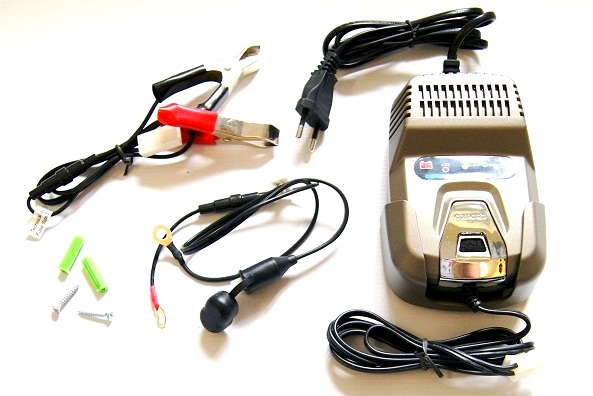 Кабель із кінцями типу шайби, який можна постійно прикріпити до мотоцикла, а інший кінець кабелю має водонепроникний штекер, який можна встановити, наприклад, під сидінням, тоді, коли ми заходимо в гараж, ми підключаємо його до розетки, і зарядний пристрій oximiser 601 подбає про нашу батарею!