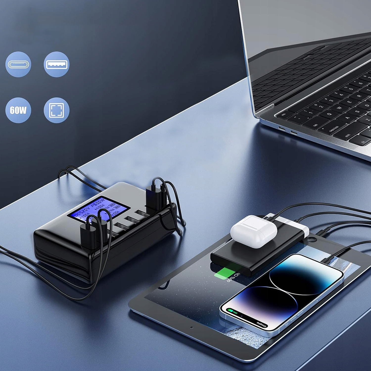 ЗАРЯДНИЙ ПРИСТРІЙ USB 8-ПОРТОВА ЗАРЯДНА СТАНЦІЯ З РК-ДИСПЛЕЄМ ПОРТАТИВНА 60W