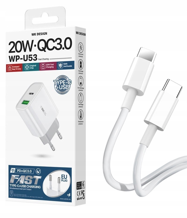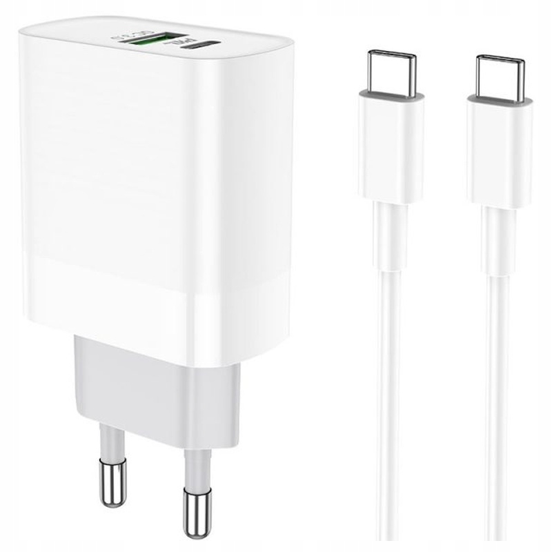 Потужний настінний зарядний пристрій потужністю 20 Вт із двома роз’ємами: одним USB QC, а іншим USB-C PD. Він забезпечує достатньо енергії для швидкої зарядки навіть найбільших доступних мобільних пристроїв, а додатковий кабель USB-C/USB-C дозволить вам використовувати його одразу після покупки - розетка, адаптована до моделі телефону, яка представлена на аукціоні . Класичний вигляд підходить для будь-якого інтер’єру, а якість виготовлення вказує на міцність і міцність пристрою.