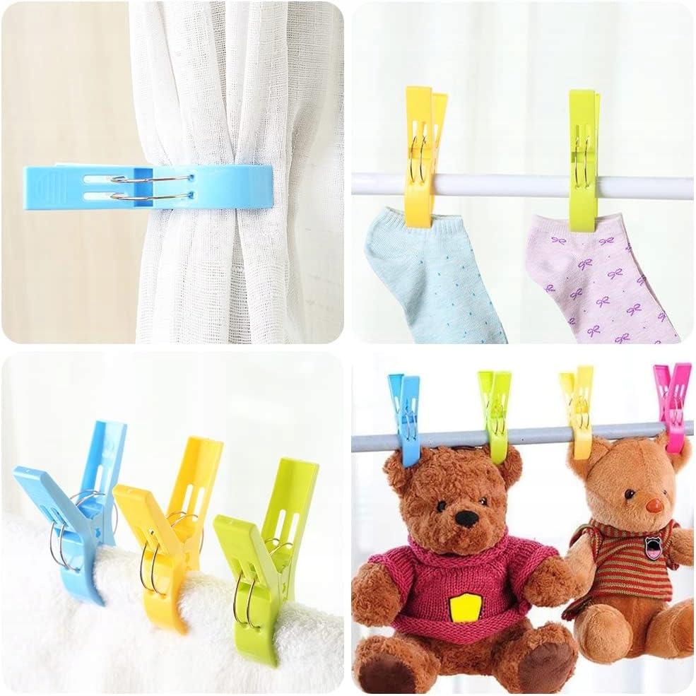 Упаковка з 12 предметів - набір містить 12 великих затискачів 4 яскравих кольорів. Ідеально підходить для затягування та утримання ковдр, ковдр, штор або банних рушників. Легкий і зручний у використанні.