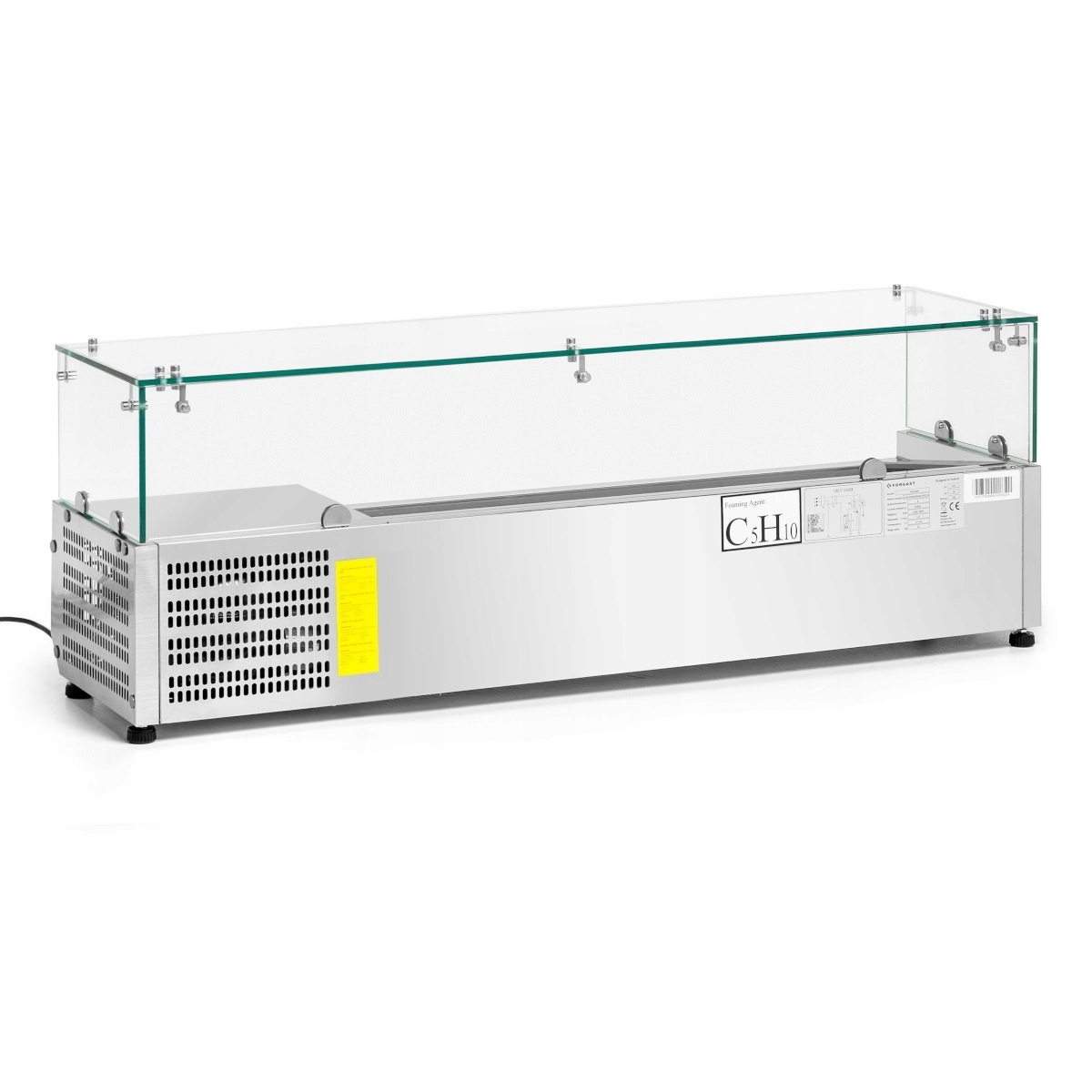 - Засклене розширення охолодження з прямим скломвід Forgast. Виготовлений з нержавіючої сталі. Ємність - 4 ємності GN 1/4. Електронний термостат Dixell і цифровий дисплей температури. Охолоджувальна камера для GN контейнерів максимальною глибиною 10 см. Пристрій адаптований для роботи в умовах з температурою до +30 ºC.