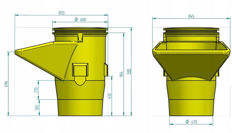 - Великий діаметр входу - 600 мм і випуск - 410 мм, що забезпечує проблеми, що не містить у собі безперебійного вибору сміття та запобігає клініці сміття всередині жолоба. Конкурс пропонує низький діаметр (заощадження на матеріалі), що впливає на клініку сміття всередині жолоба. вкладка (місце одного шва в іншому), що запобігає виникненню елементів; У порівнянні з конкуренцією, наші жолоби є найдовшими і забезпечують найбільшу довжину з вкладкою