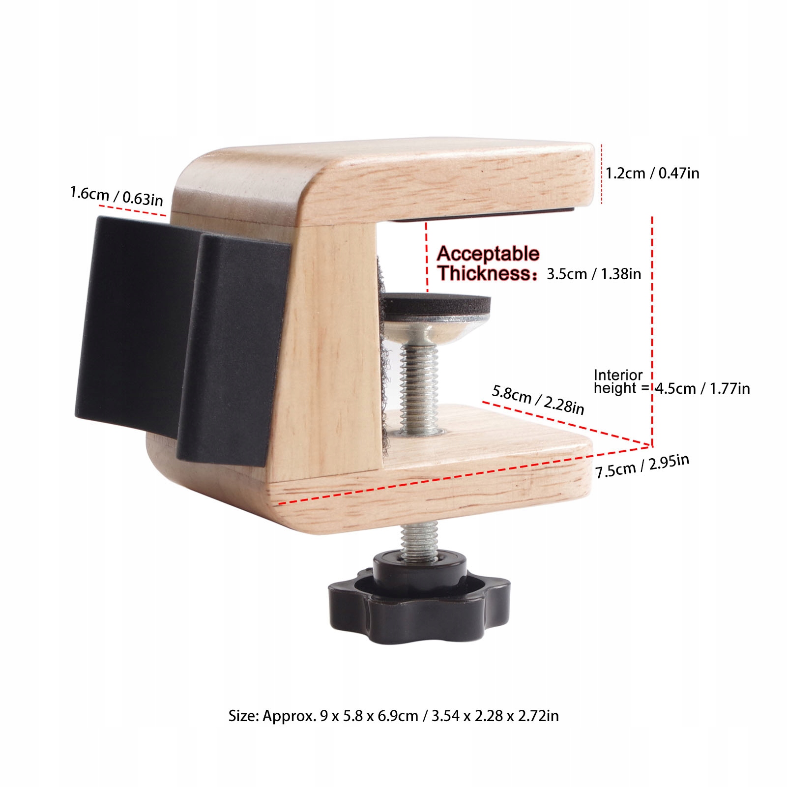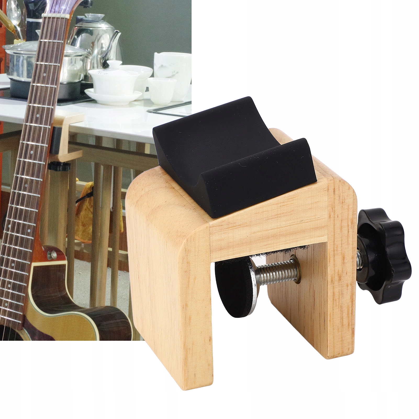 2. КОНСТРУКЦІЯ РЕГУЛЬОВАНОГО ЗАЖИМУ: настільна підставка для гітари забезпечує безпечний спосіб тримати вашу гітару збалансованою на краю столу без ковзання, завдяки регульованому затискачу для планшетів товщиною менше 3,5 см.