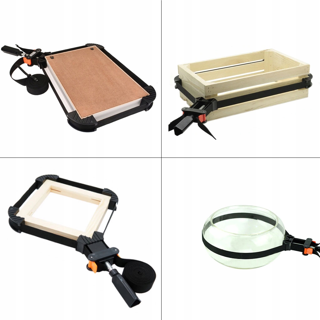 Вони використовуються для складання рамок для картин, шухляд, каркасів стільців або інших виробів різного розміру та конфігурації перед склеюванням або кріпленням.