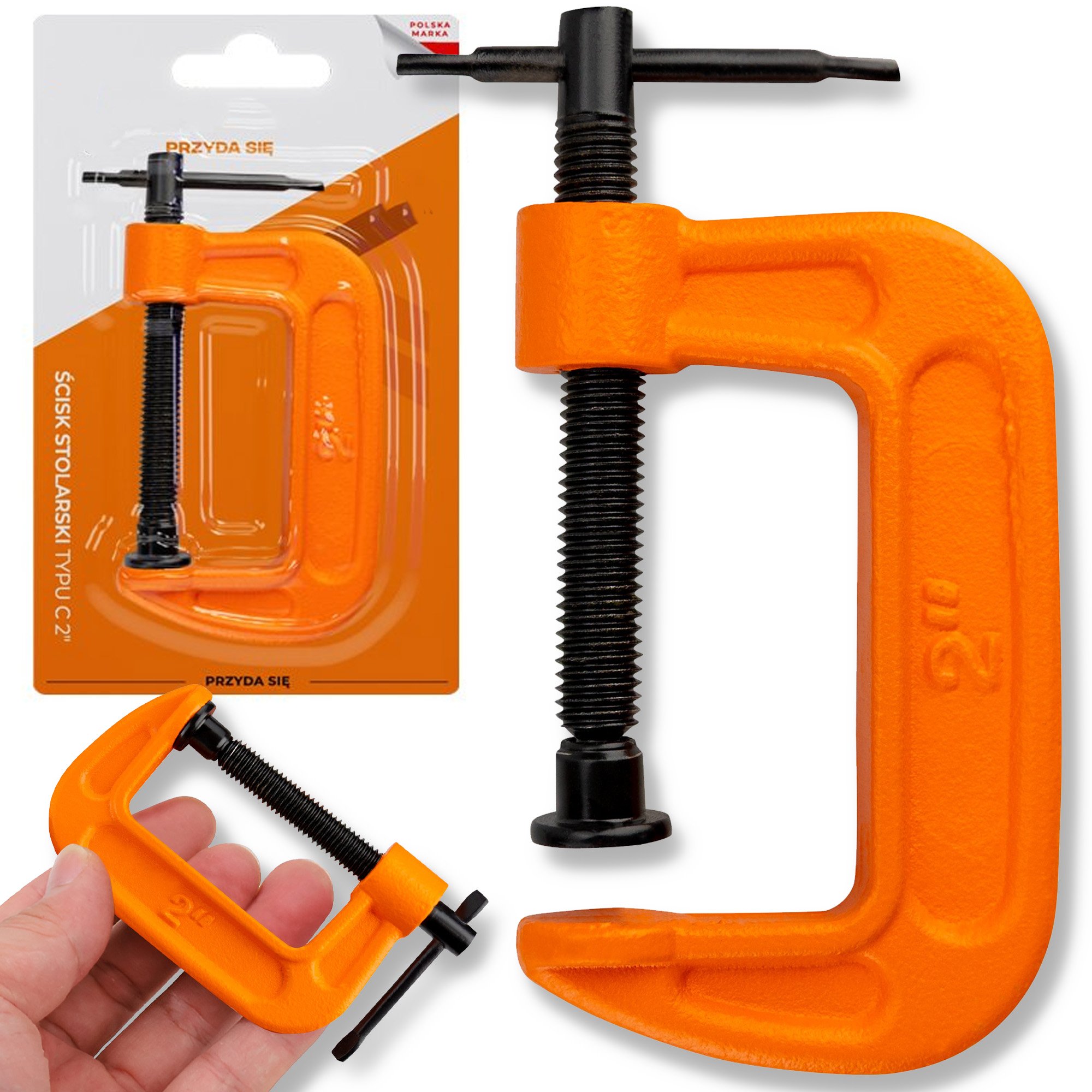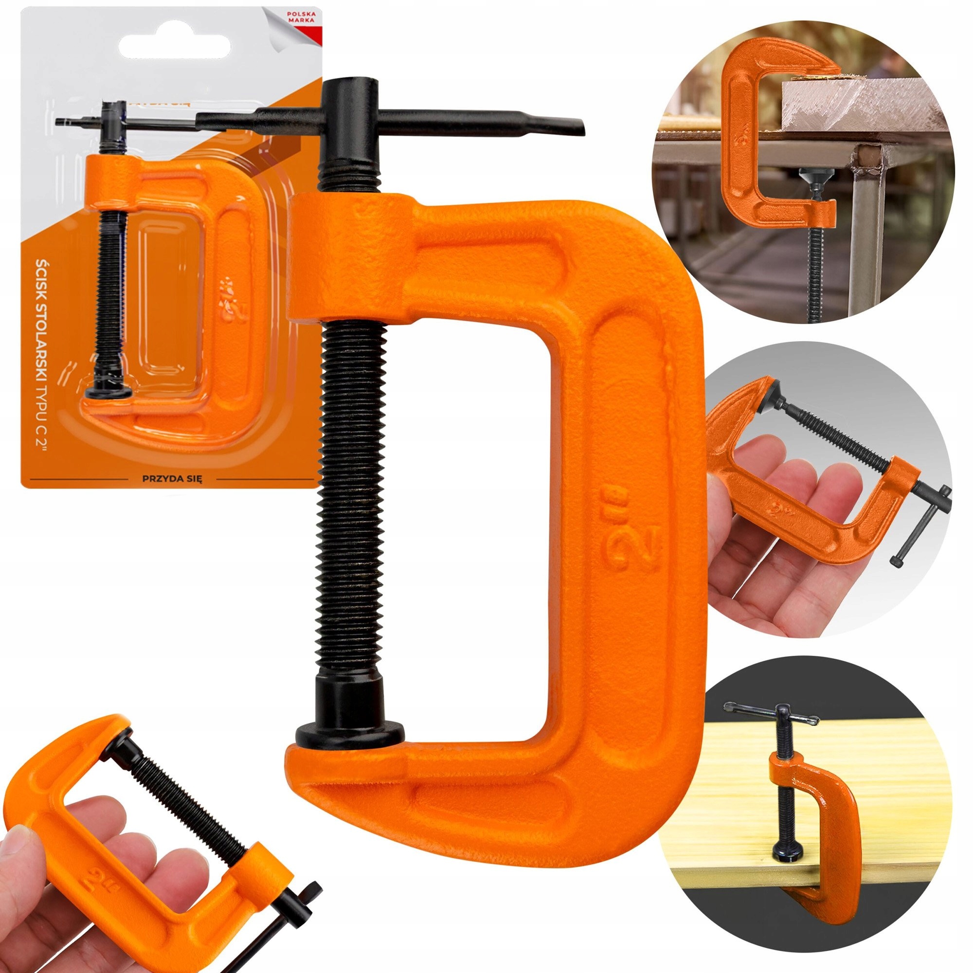 Завдяки характерній формі літери "C", затискач дозволяє легко і безпечно кріпити дерев'яні, металеві або інші матеріали під час склеювання, складання або обробки. Така форма забезпечує не тільки великий робочий простір, але також стабільність і рівномірний тиск на скріплювані матеріали, що гарантує точне і стабільне кріплення. Крім того, відстань між інструментами 2" (50 мм) робить його ідеальним для використання в невеликих елементах і точних столярних роботах. 🔨