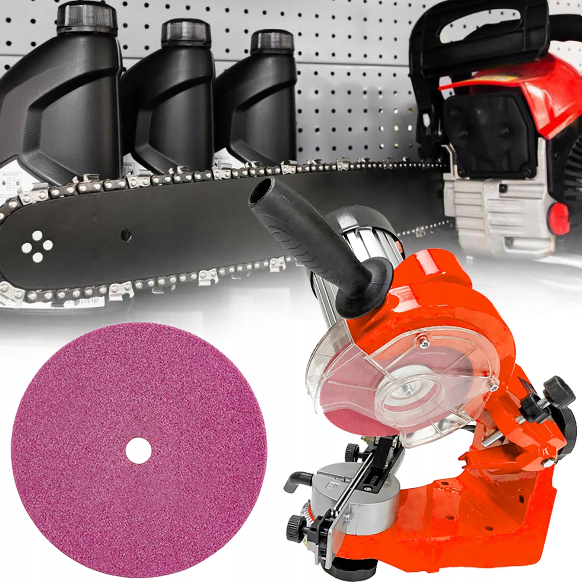 ПРОФЕСІЙНЕ ЗАТОЧУВАННЯ ДЛЯ ЛАНЦЮГІВ З ІНДУКЦІЙНИМ ДВИГУНОМ + ДОДАТКОВИЙ ДИСК