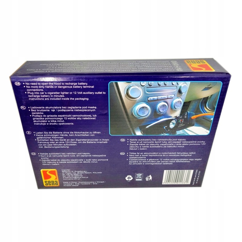 Підключіть їх до розетки автомобільного прикурювача на 12 В і розетки справного автомобіля, щоб зарядити акумулятор за кілька хвилин. Виріб додатково комплектується лампою.