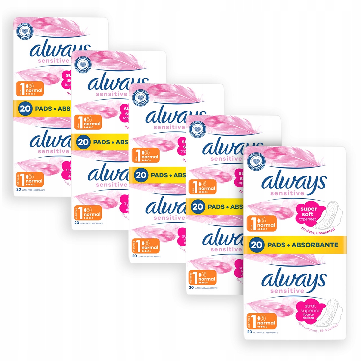 - Завжди санітарні серветки з крилами нормальний чутливий розмір 1, 20 штук x5