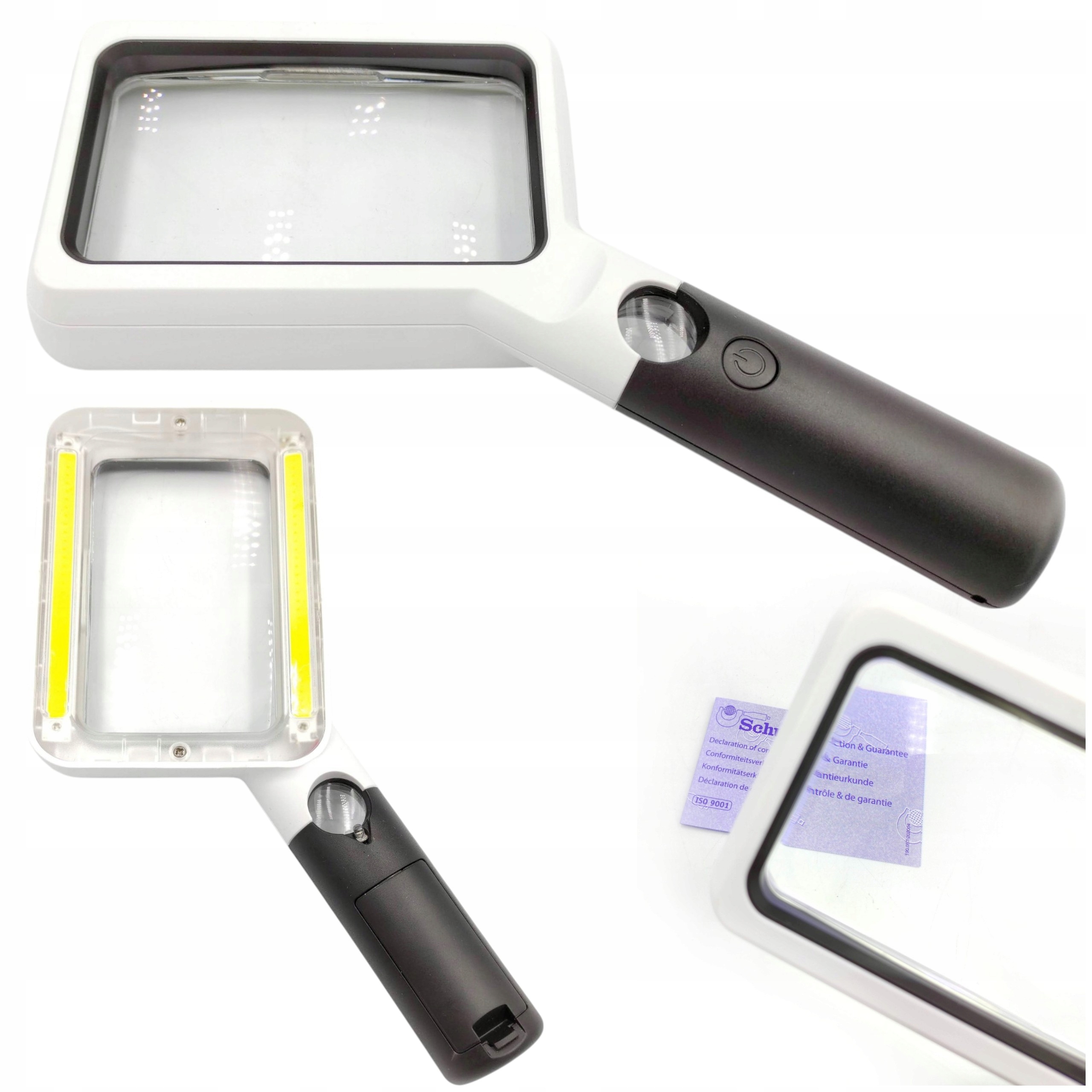 lapa з світлодіодним підсвічуванням, обрамленим у зручній ручці. Це розширення скла має два окремі лінзи, невеликі та великі з виділеною підсвічуванням, окремо для кожного з них.