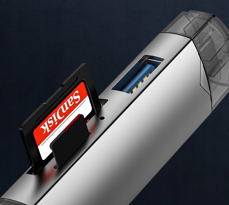 ☑sb3.0 зчитувач карт із портом USB, портом Micro-USB та портом Type C, завдяки якому зчитувач картки сумісний із планшетами та смартфонами, які підтримують функцію OTG