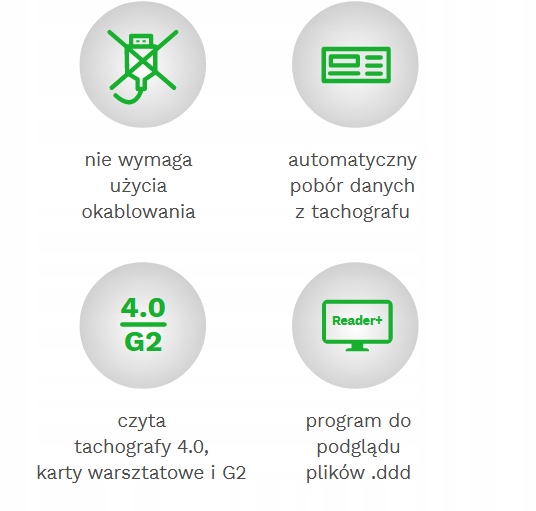 - зчитує розумні тахографи 4.0
