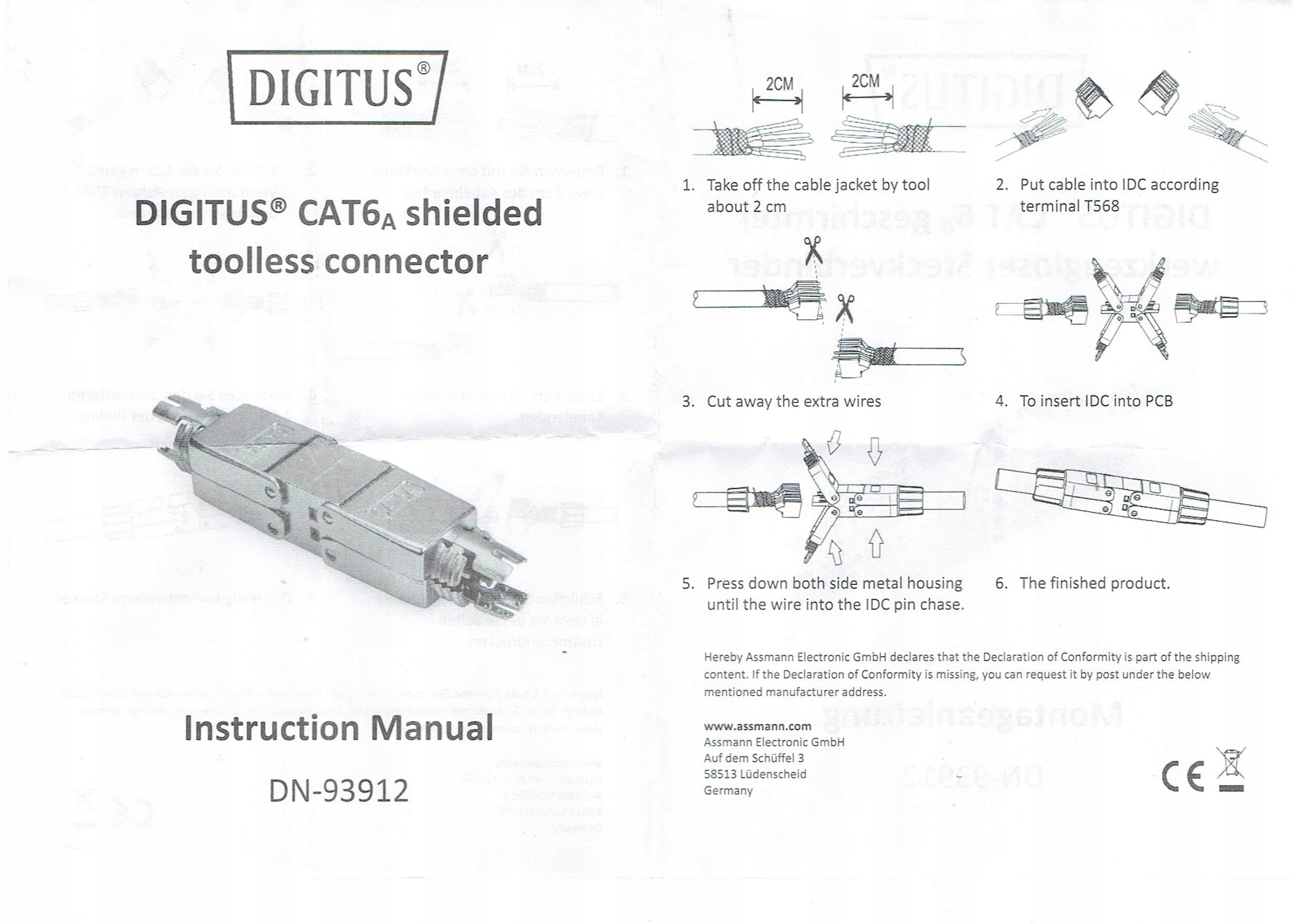 - З’єднувальний корпус Cat6.A підходить для кабельних провідників від AWG 26/7 до 22/1 – пропозиція DIGITUS включає мережеві кабелі, які відповідають усім вимогам до кабелів.