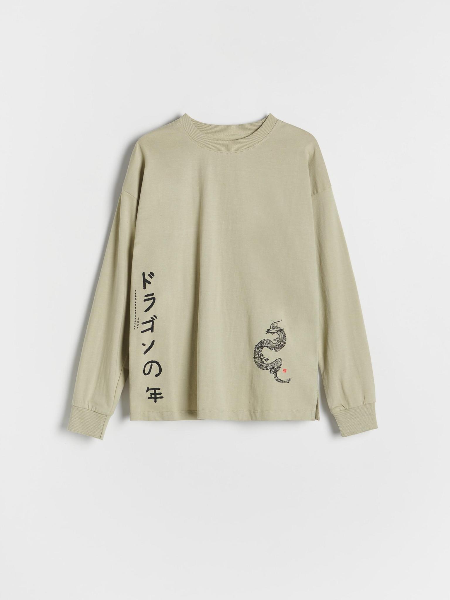 ЗЕЛЕНА БЛУЗА З ДОВГИМ РУКАВОМ КЛАСИЧНИЙ БАВОВНОВИЙ ПРИНТ RESERVED 158/164