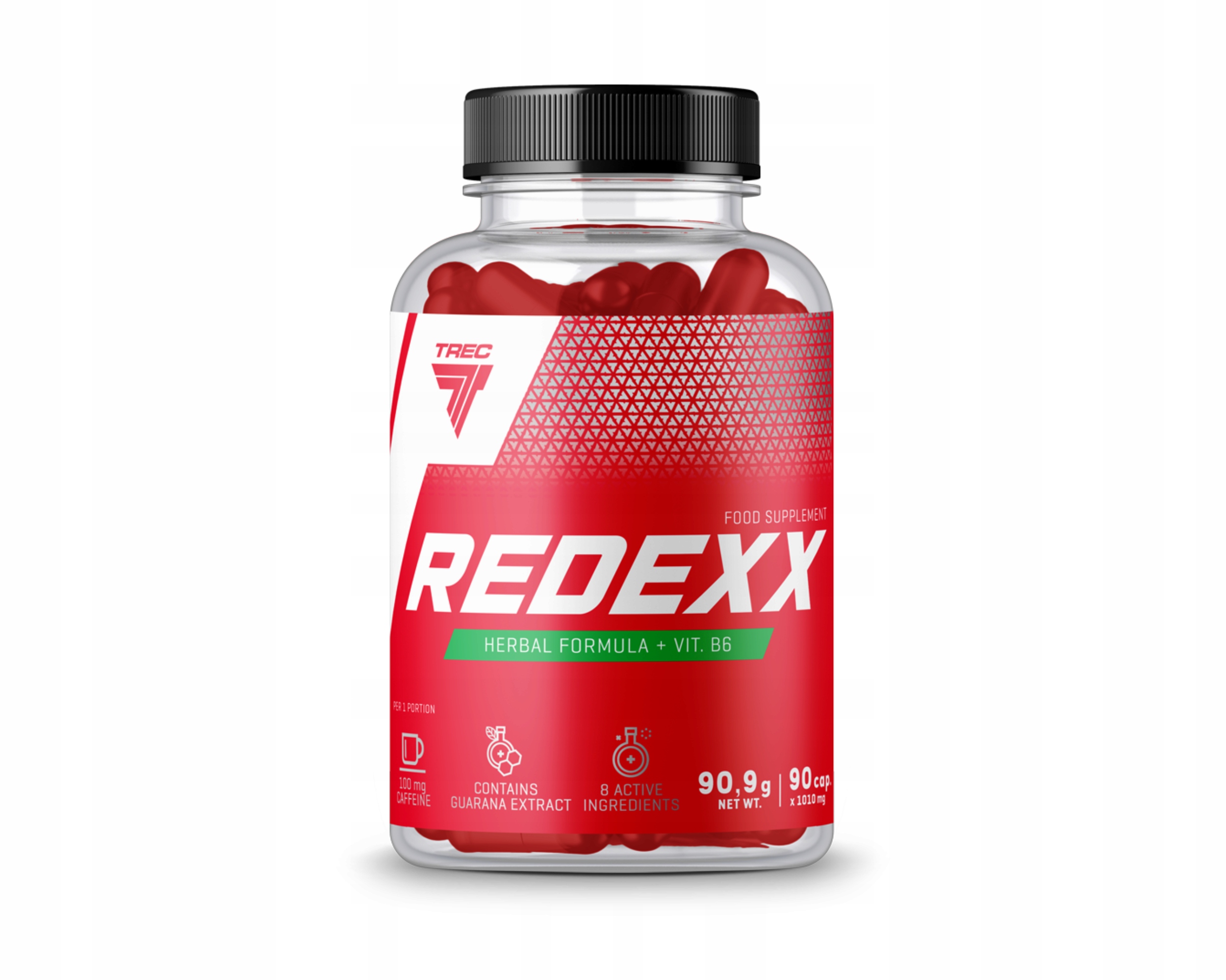 REDEXX - це ретельно відібраний набір природних термогеників, вітамінів і кофеїну. REDEXX містить пантотенову кислоту, яка сприяє підтримці нормального енергетичного обміну та зменшує відчуття втоми та втоми, а також хром, який сприяє підтримці правильного обміну макроелементів.