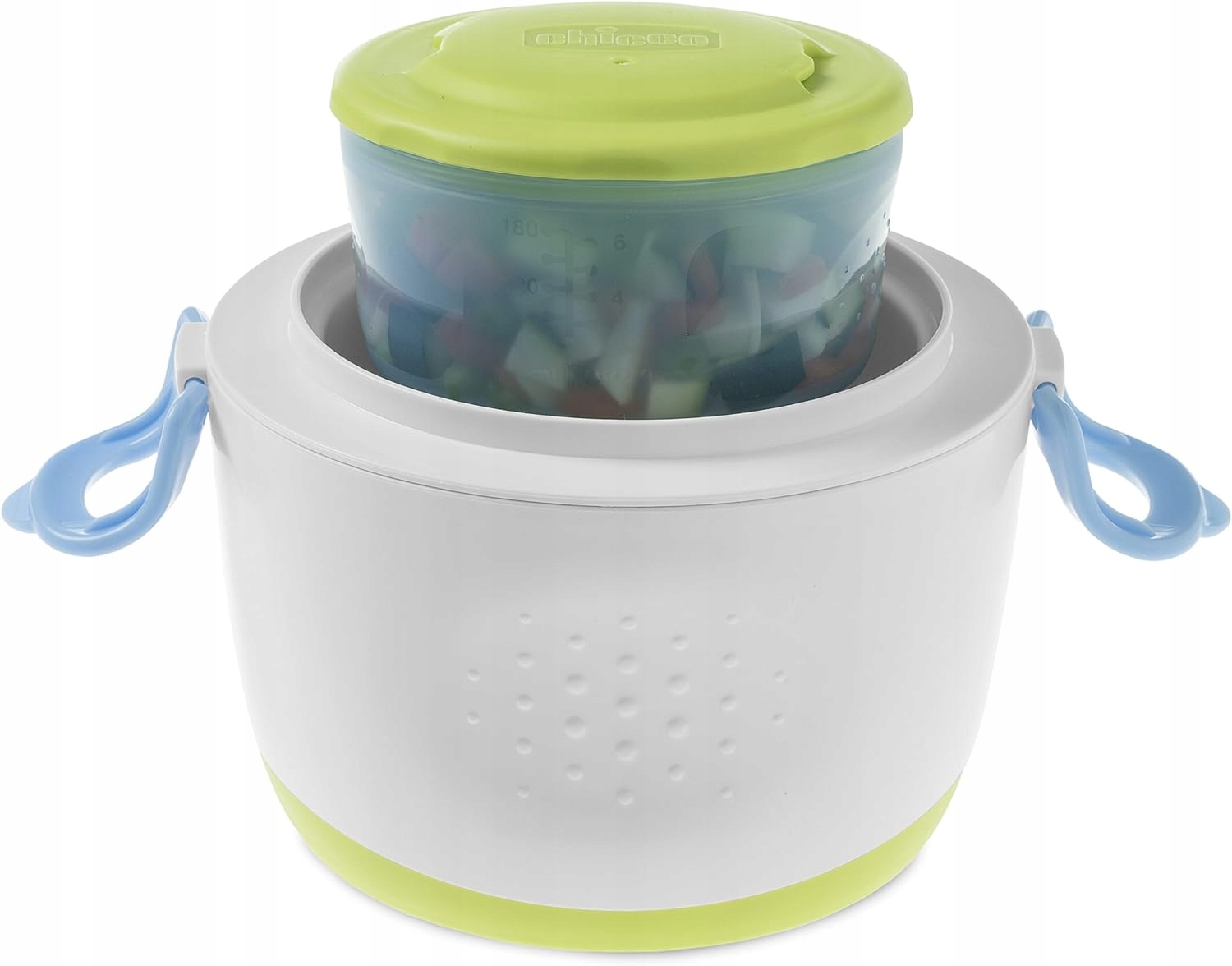 Щільний контейнер об’ємом 180 мл можна наповнити гарячою або холодною їжею, а потім помістити в термоконтейнер (350 мл). Завдяки цьому ви можете в будь-який час взяти їжу малюка з собою і зберігати її теплою або прохолодною в термоконтейнері до 6 годин. Завдяки доданій ложці, яку можна гігієнічно зберігати в практичному футлярі, годувати під час подорожі дуже зручно. Меншу ємність (180 мл) можна транспортувати в термоконтейнері або прикрутити до кришки.