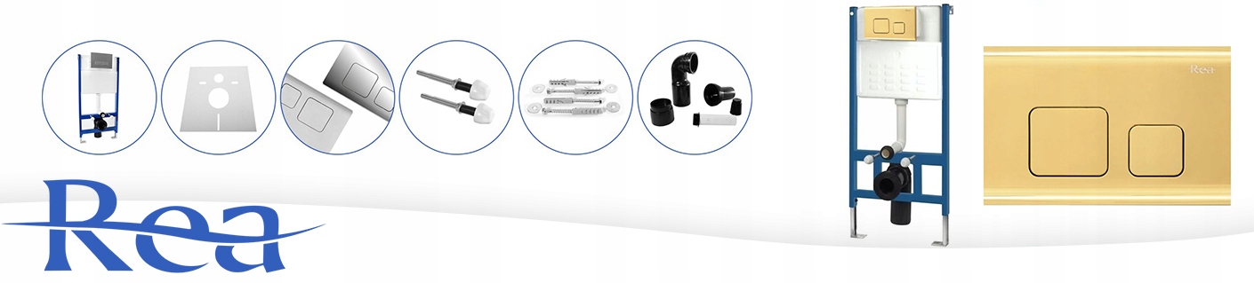 Zestaw 6w1 Slim 9cm Stelaż Podtynkowy WC F Złoty Przycisk Spłukujący REA