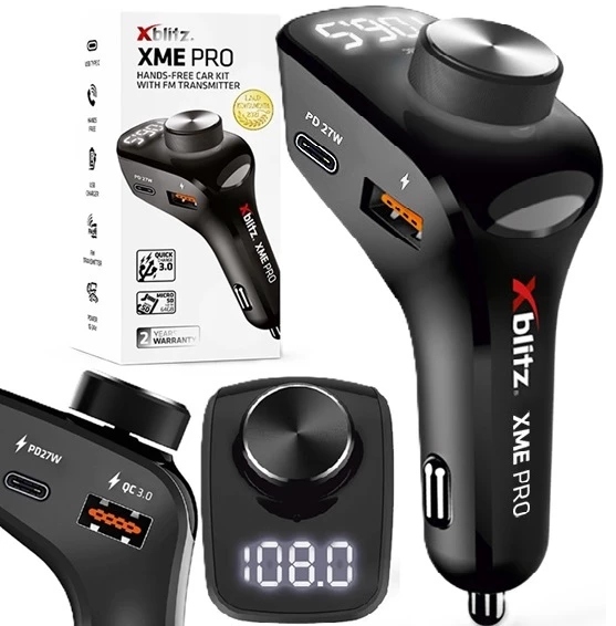 ZESTAW GŁOŚNOMÓWIĄCY XBLITZ XME PRO TRANSMITER FM SAMOCHODOWY BLUETOOTH