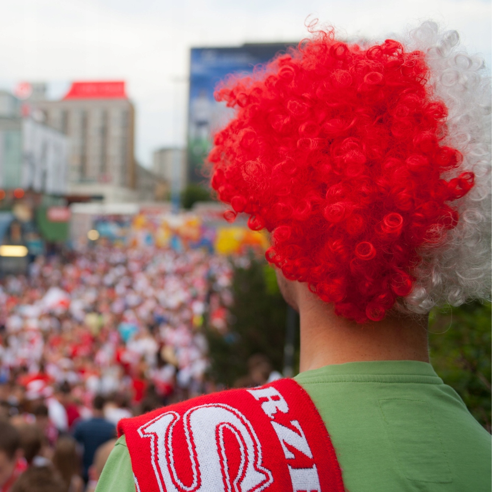 Набір уболівальників – окуляри та афро-перука Польща, білий і червоний – висловіть свою підтримку команді