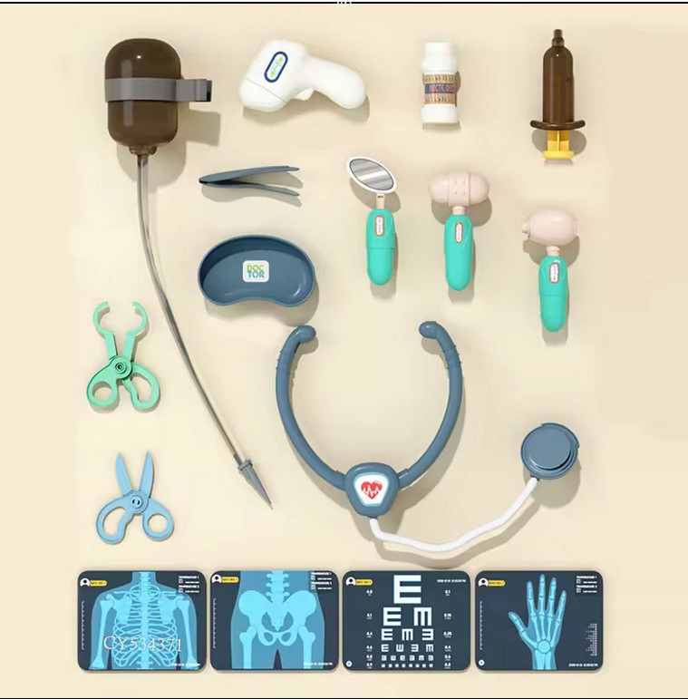Великий набіраксесуарів, які надають багато можливостей для гри. Ваша дитина буде ними лікувати всіх домочадців, ведмедиків і ляльок, а заодно звикне до роботи лікаря і не буде боятися випробувань.