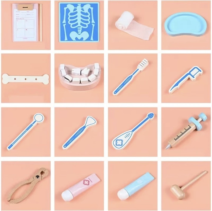 Zestaw małego doktora lekarz drewniane akcesoria walizka stetoskop (W079)