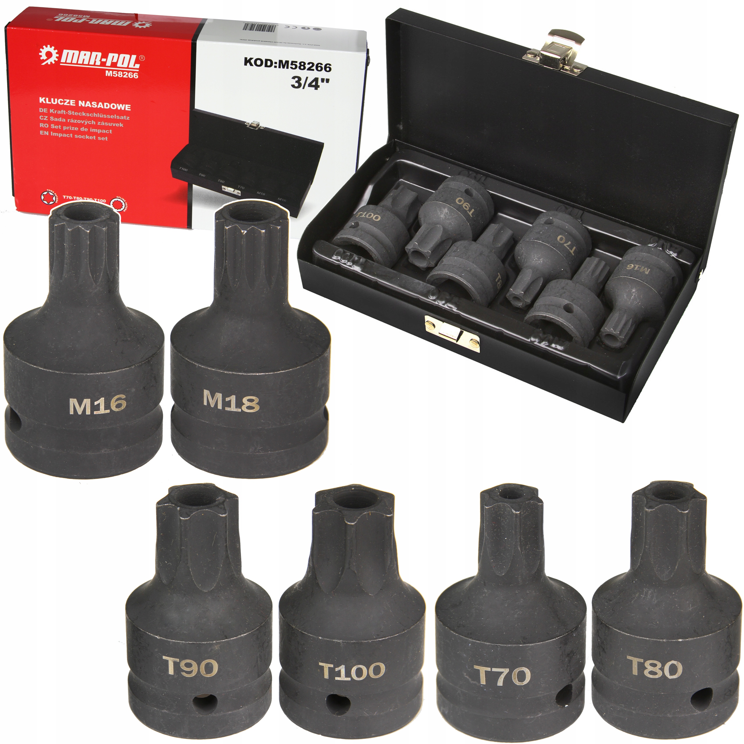 ZESTAW NASADEK I BITÓW UDAROWYCH 3/4" KLUCZE TRZPIENIOWE Torx Spline CrMo