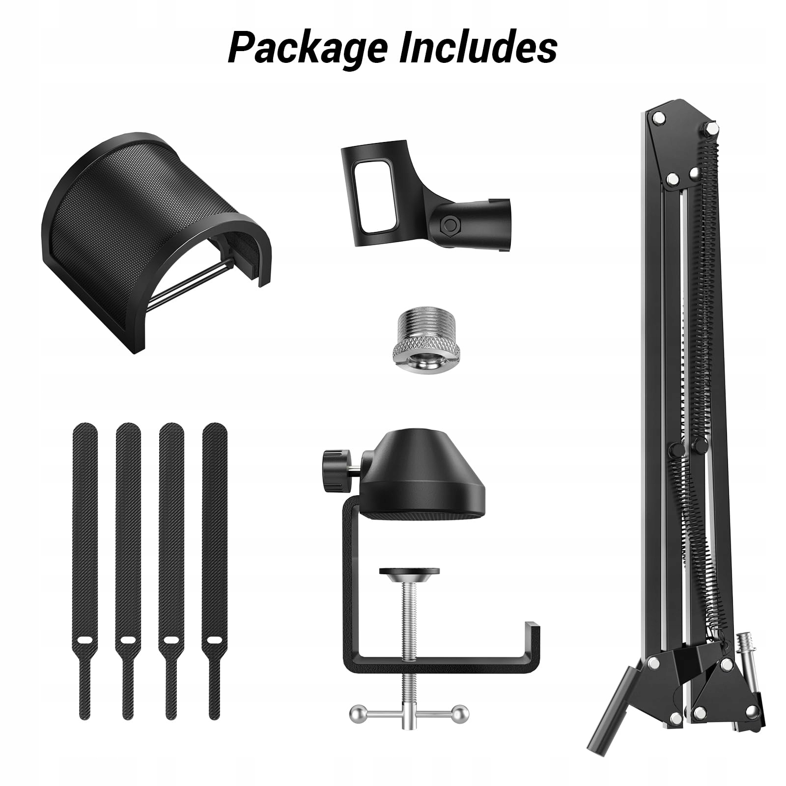Дуже великий розпилювальний кожух на 180°: вузол приводу штанги включає вигнутий на 180° розпилювальний кожух, який може ефективно запобігати шуму від кута подачі повітря. Це пристрій мікрофонного типу. , з ємністю 2,95 дюйма (7,5 сантиметра), включаючи підключені моделі мобільних пристроїв, такі як Blue Yeti, HyperX Quadrast, AT2020 і TONOR Q9.