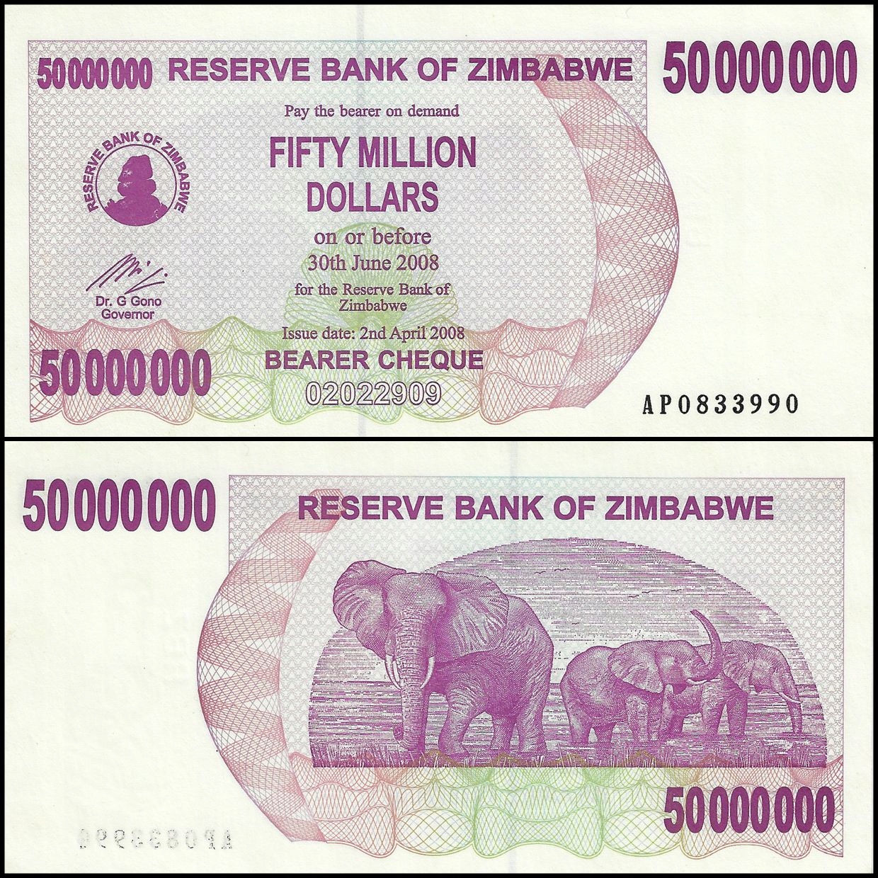 Зімбабве 50000000 Долар 2008 P-57 UNC