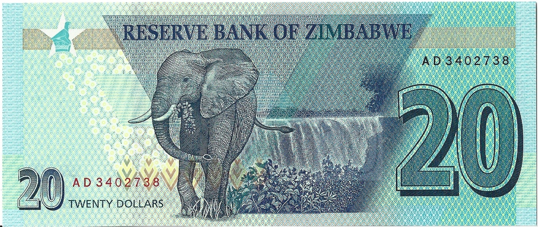 - Номінальна вартість: 20 Z$ - зімбабвійський долар
