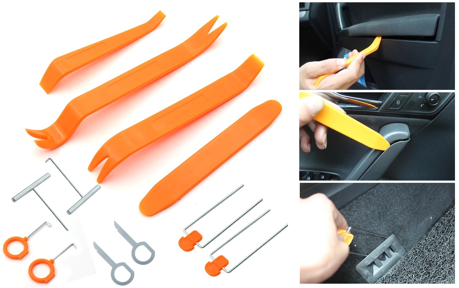 Пропонований набір складається з 12 різних відкривачів, які можна використовувати під час демонтажу оббивки, кузова, радіо, навігації, ущільнювачів, кришки дверей або кабіни вашого автомобіля.