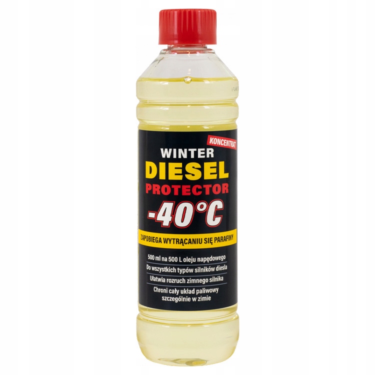 рік -кінцевий, технологічно розвинений та висококонцентрований рафінальний добавок на дизель. Це запобігає утворенню кристалів парафіну та потовщення дизеля при низьких температурах, захищаючи від блокування фільтра та іммобілізації транспортного засобу. Сприяє початку двигуна та покращує його експлуатацію. Зменшує споживання палива. Ефективне додавання до температури -40 ° C (залежно від використовуваного палива). 1 літр достатньо для 1200 літрів дизеля.