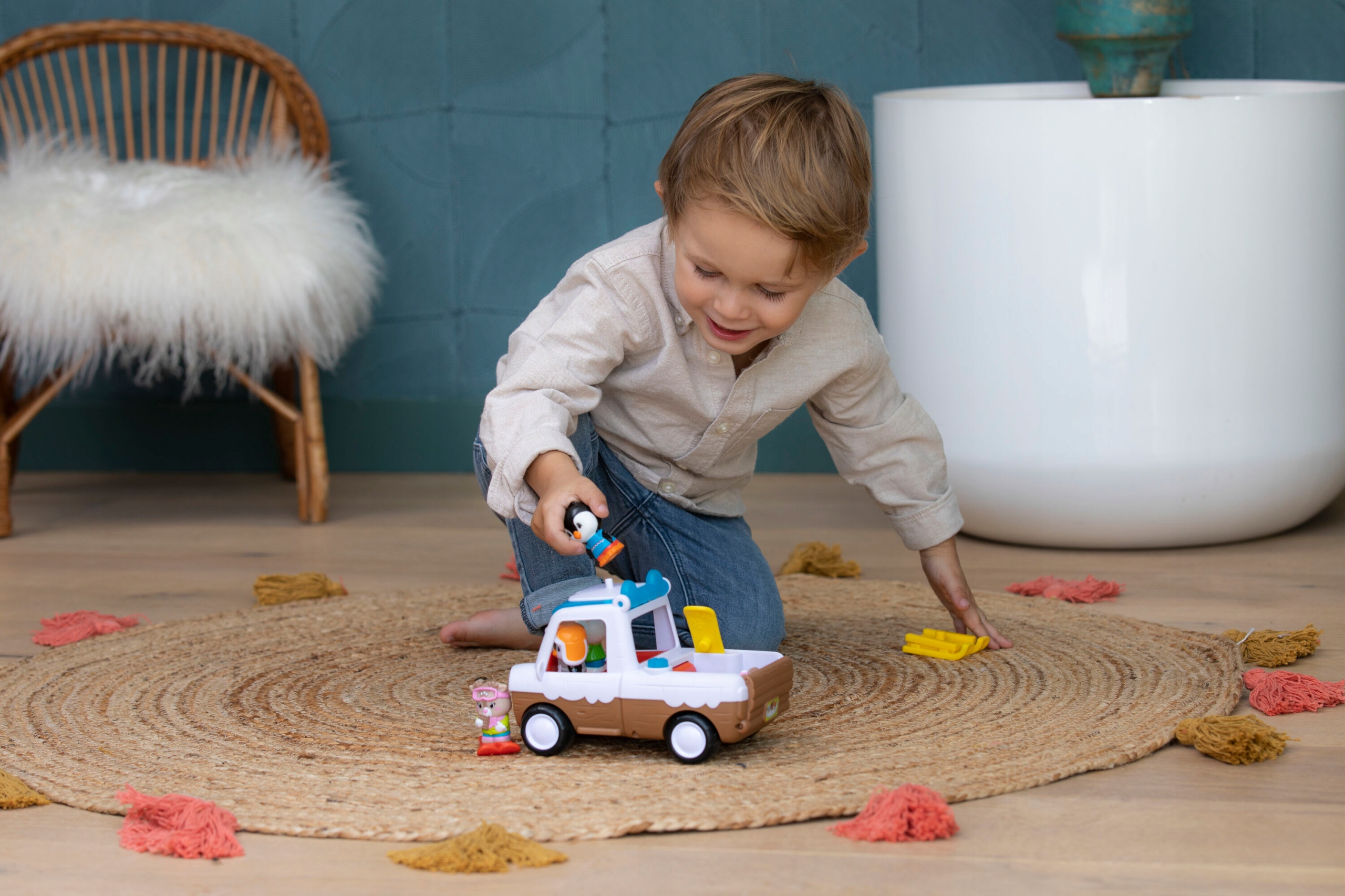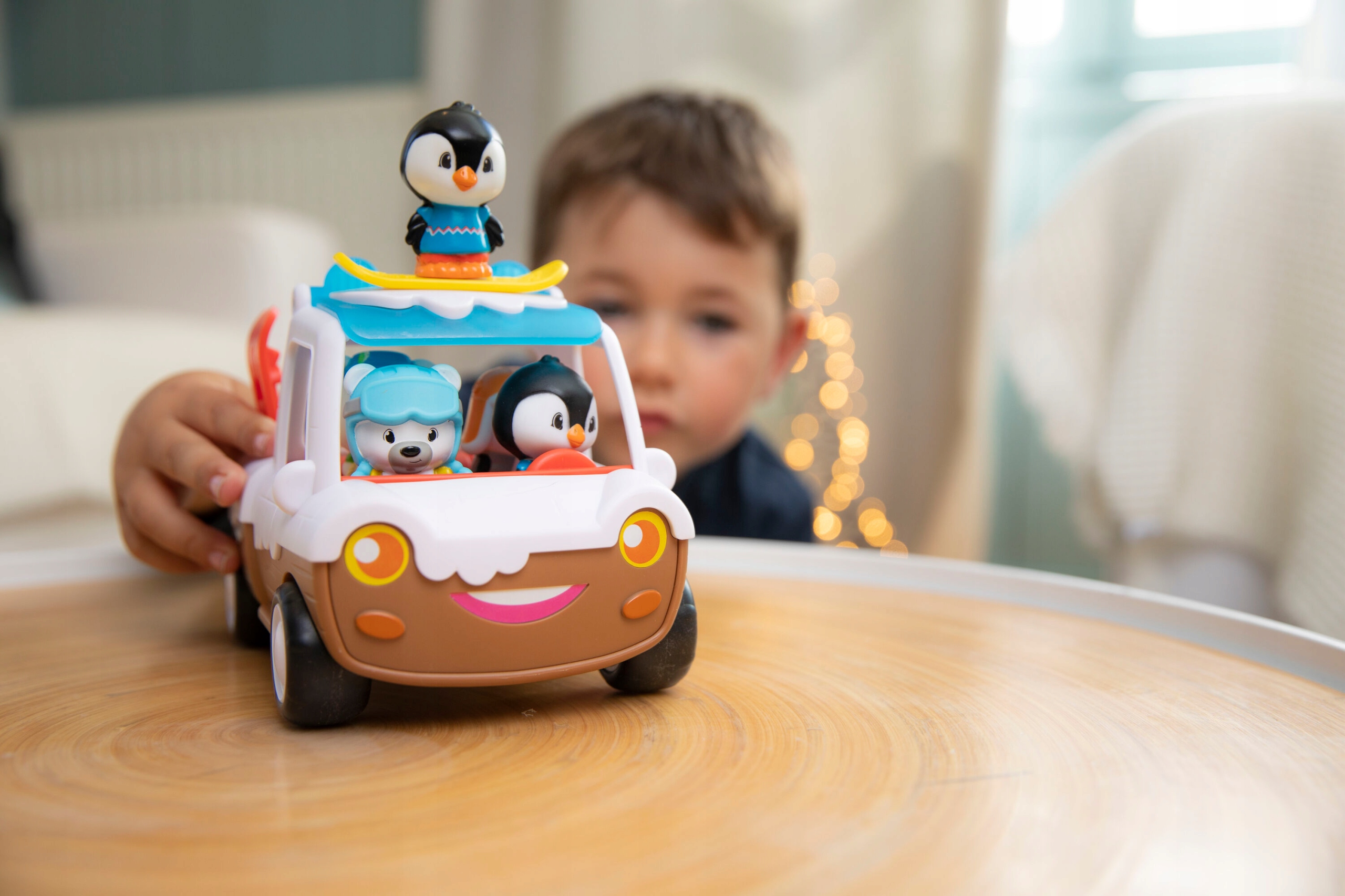 У набір входить: засніжений пікап, один пінгвін , санки, лижі, сноуборд. Іграшка для дітей від 18 міс. Радимо протерти поверхню іграшки мильною водою та вологою тканиною.