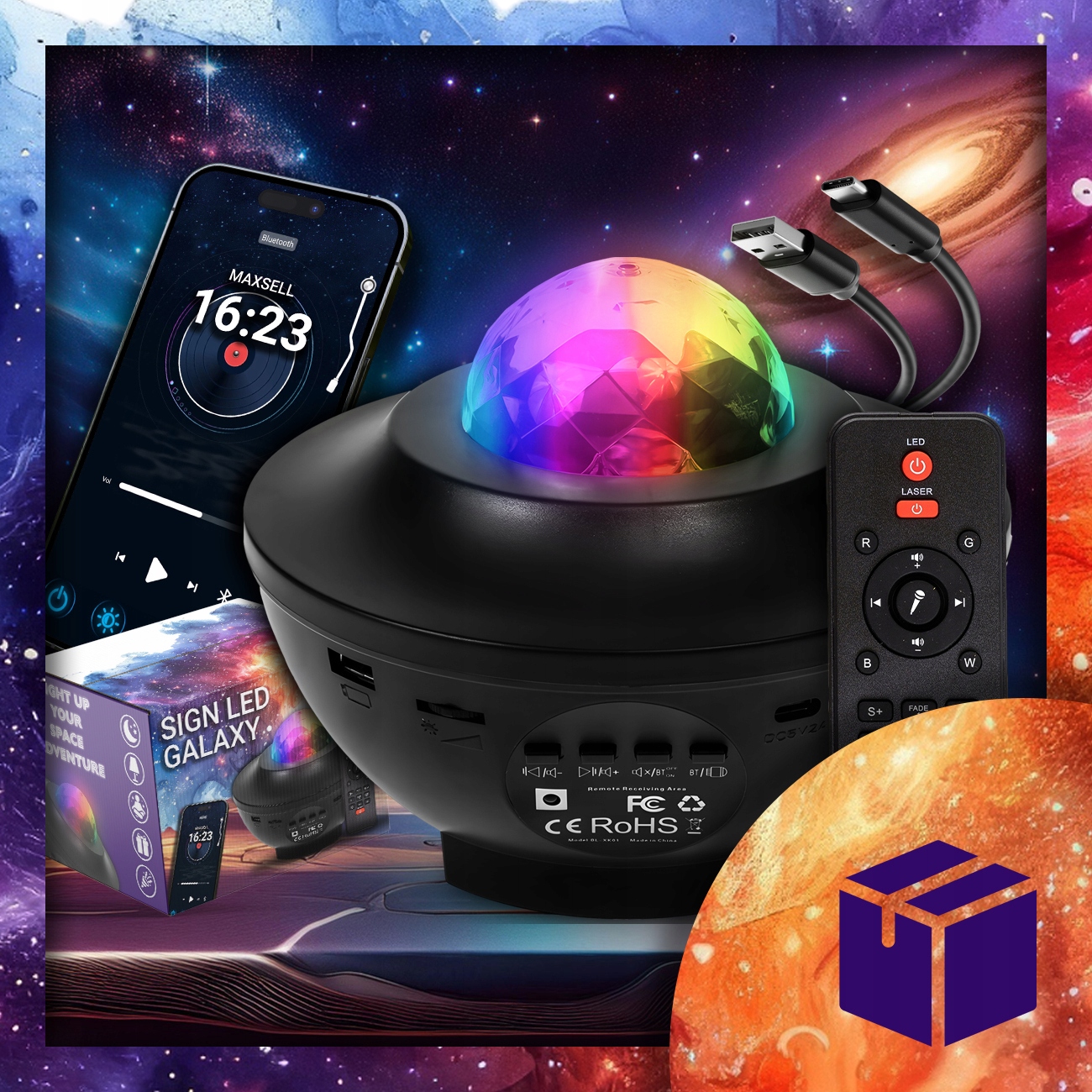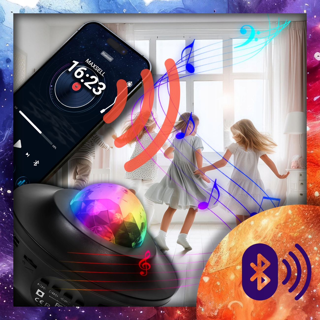 - Просто з’єднайте пристрій з телефоном, щоб насолоджуватися прекрасними кольорами та звуками улюбленої музики. спальня або навіть на відкритому повітрі.