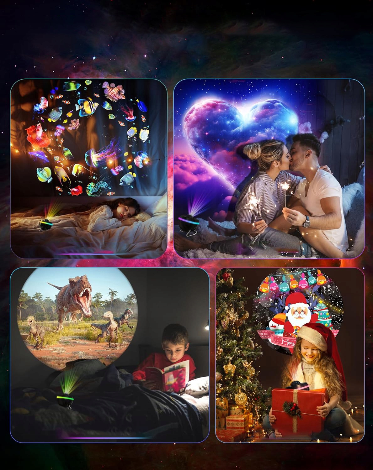 - Вбудований ефект падіння метеорів створює романтичну атмосферу. Космос "зима" країна чудес, туманність Оріона, динозавр, морський організм, день Святого Валентина, Різдвяний місяць (побудований -in). Дорослі.
