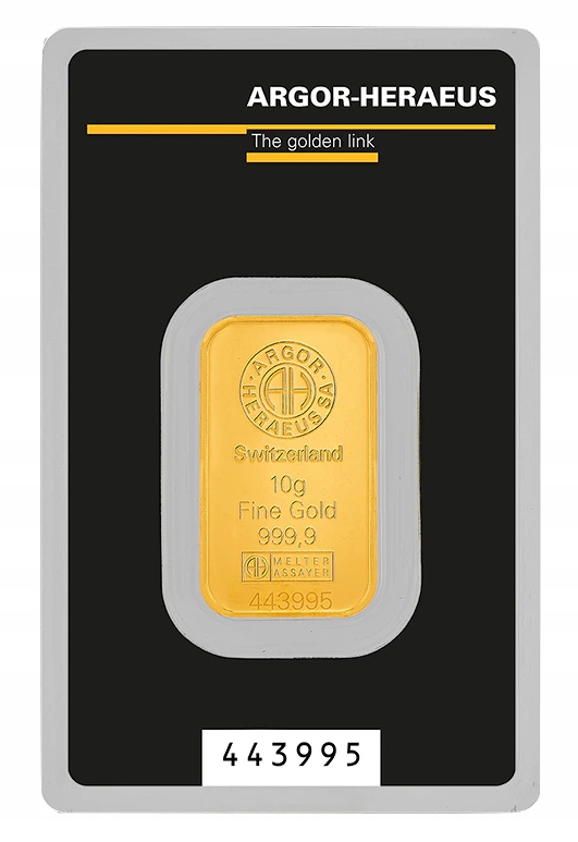 ЗЛИТОК ЗОЛОТА ARGOR-HERAEUS 10 ГРАМ ШВЕЙЦАРІЯ 10 г Au LBMA