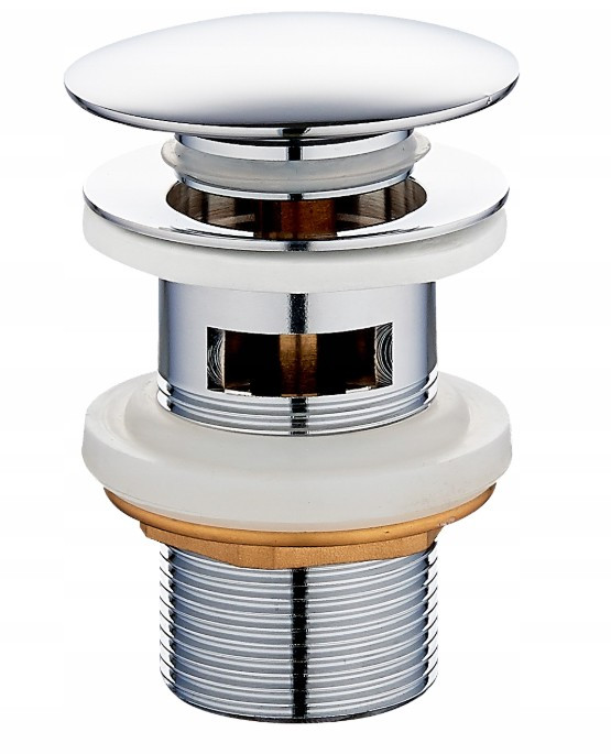 Слив для умивальника виготовлений з латуні з круглою декоративною пробкою діаметром 66 мм.