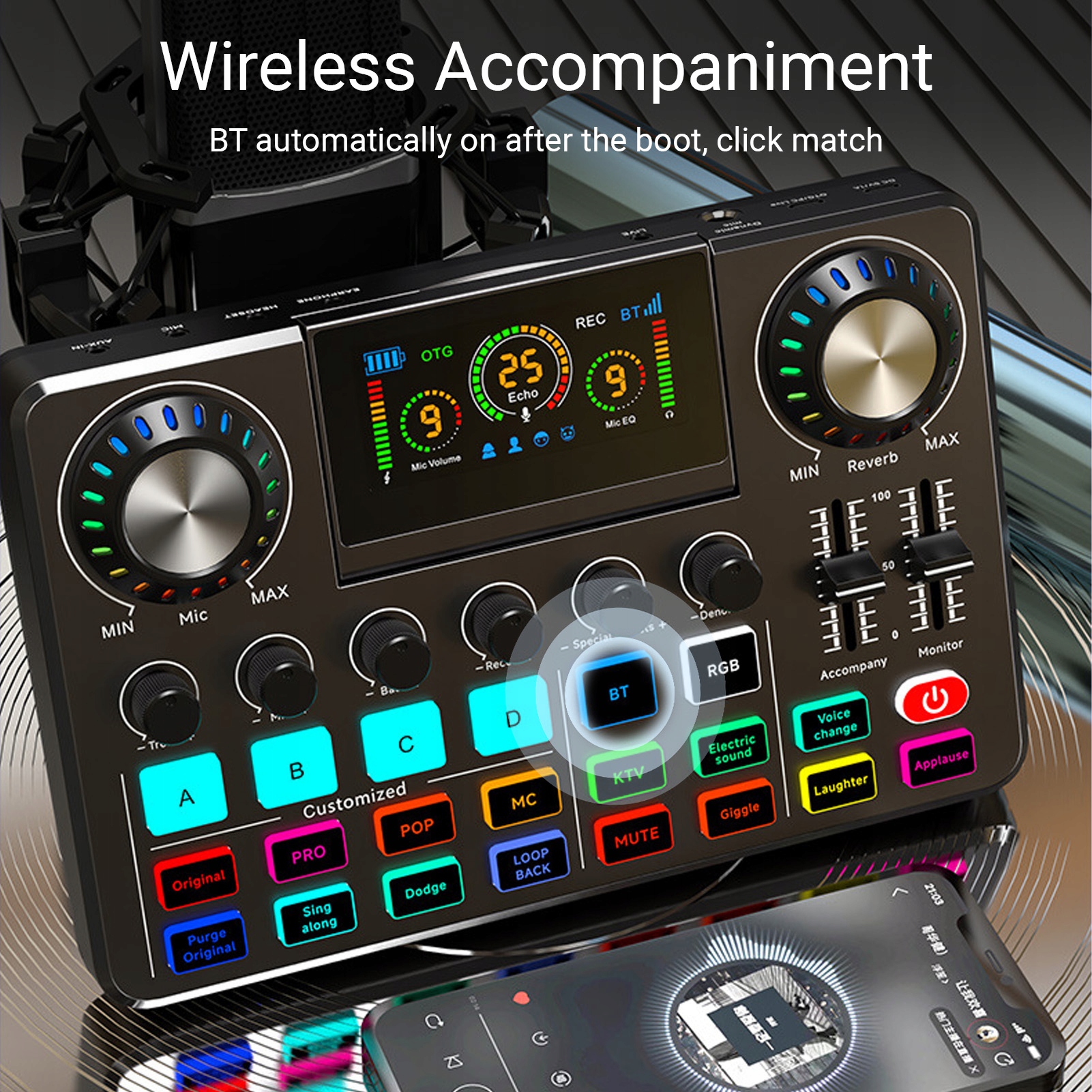 1. Цифровий звук: досвід Superior Audio з нашою звуковою карткою живою, батько OTG без втрат передач для кришталево чистого якості звуку. Unile традиційні 3,5 -мм інтерфейси, наш змішувач звукових карт забезпечує справжній аудіо -досвід для мобільного караоке та пряму трансляцію.