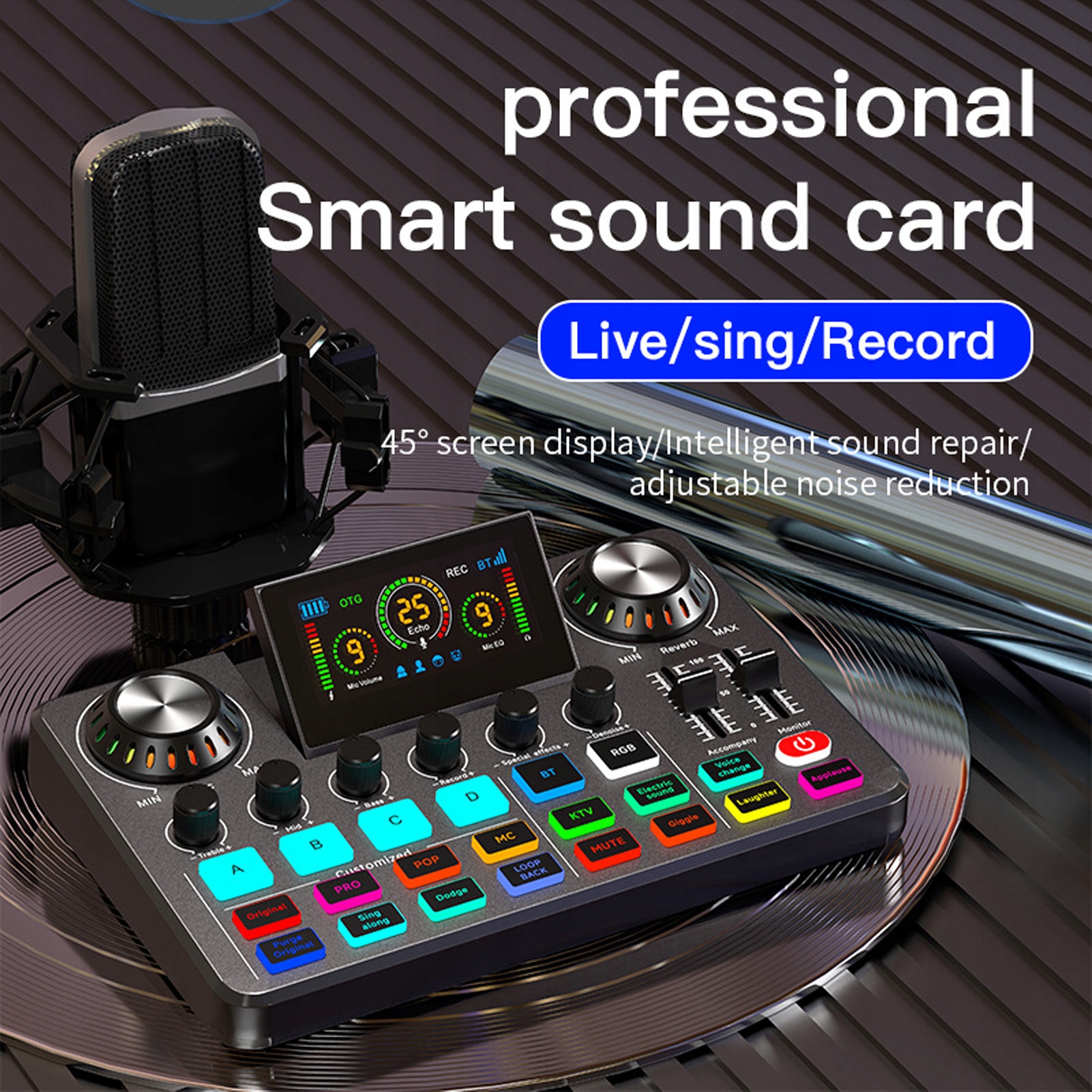 - Налаштування звуку: коригування високої/середньої/низької фірми; Супровід, реверберація, моніторинг, спеціальні ефекти, коригування запису; Налаштування об'єму мікрофона; Налаштування шумного зменшення штук;