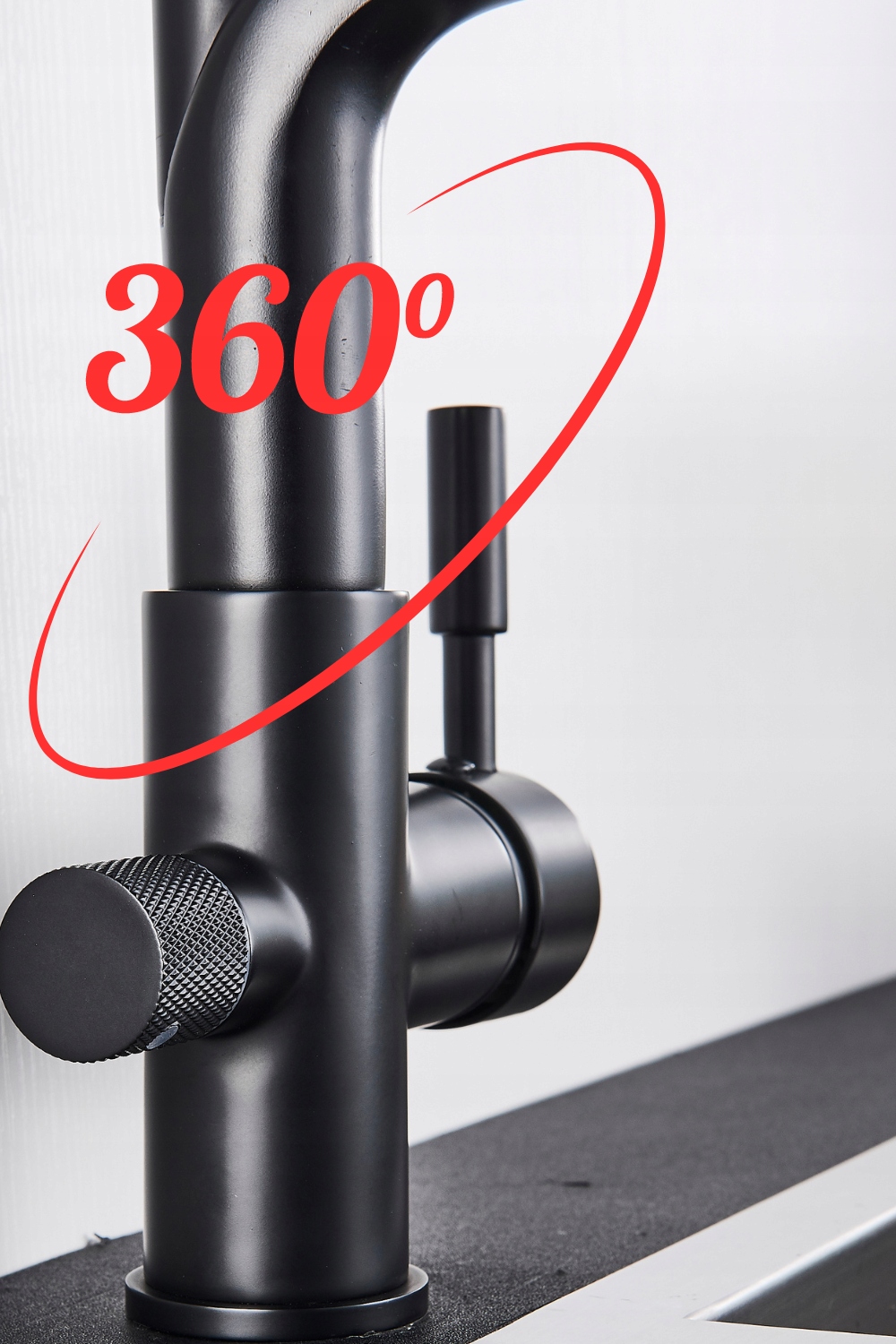 ТРИХОДОВИЙ КУХОННИЙ ЗМІШУВАЧ З ПОВОРОТНИМ ВИЛИВОМ КУХОННИЙ КРАН ЧОРНИЙ ФІЛЬТР