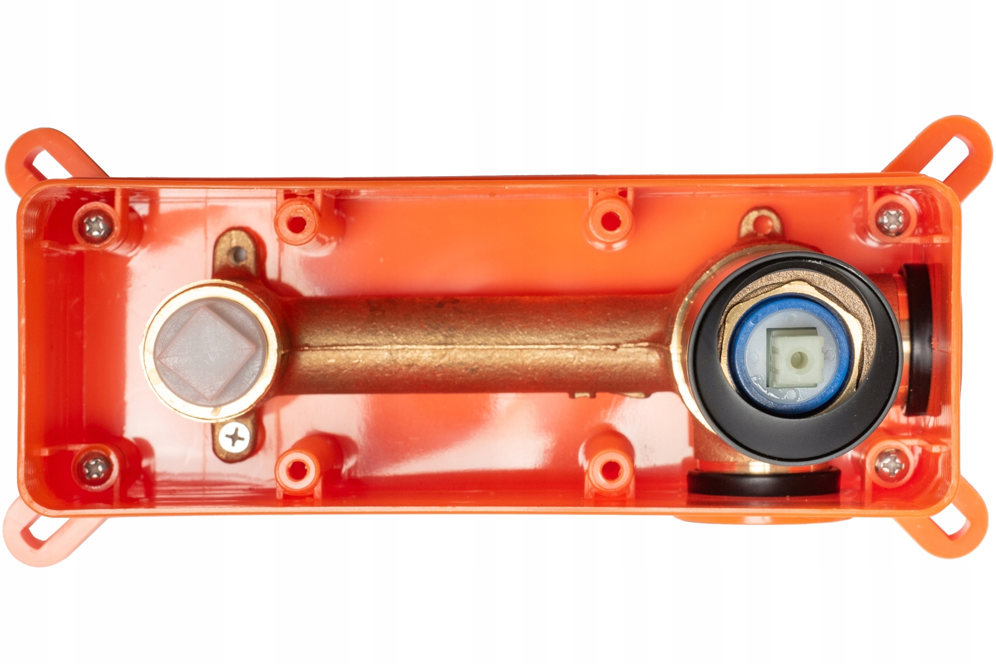Представляємо інноваційну систему Box для встановлення прихованого змішувача. Система забезпечує зручний і швидкий монтаж. Виготовляється з пластикових і латунних внутрішніх елементів, що гарантує високу якість і надійність. Елемент оснащений маскувальною частиною, яка захищає внутрішні елементи під час складання, і рівнем, який сприяє правильному і точному монтажу. Система забезпечує легкий доступ до внутрішніх компонентів батареї після встановлення з метою обслуговування.