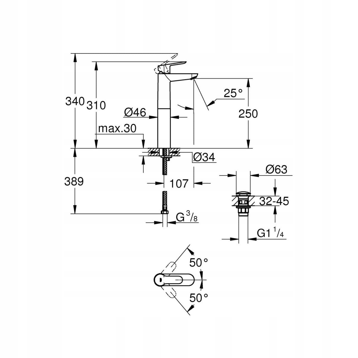 - назва товару: змішувач для умивальника Grohe Bauloop, розмір XL, для раковини, розмір XL, гладкий корпус, 23764000