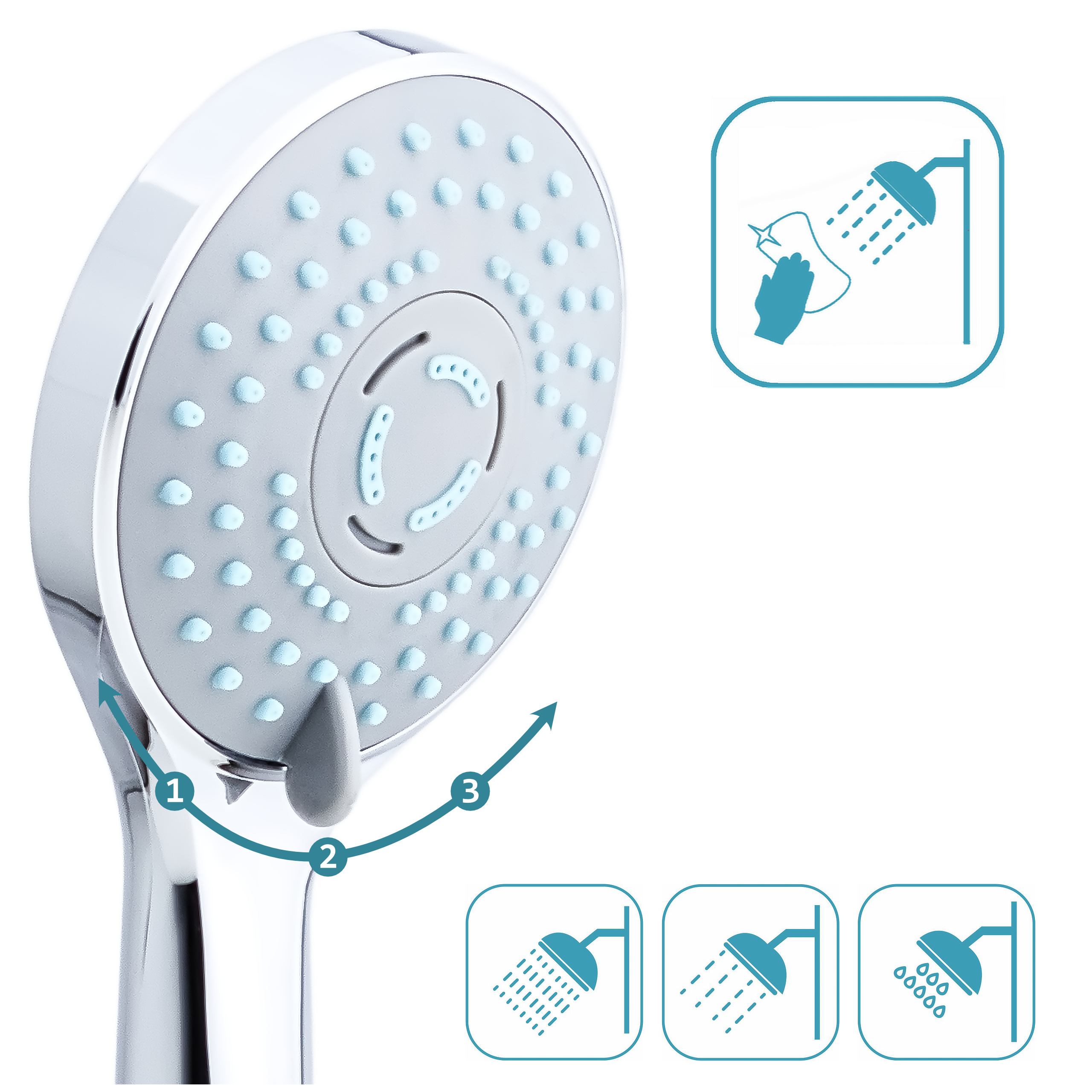 водозберігаюча душова лійка з функціями гідромасажу, дощу та змішаного струменю