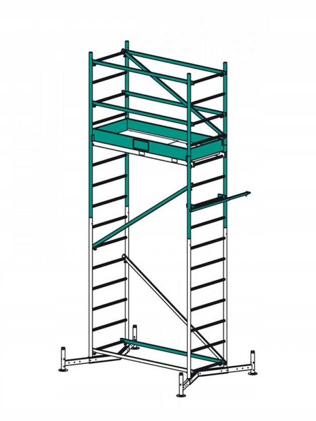- Fundamental Рамки з нижньою v -урядованою частиною, що збільшує поверхню підтримки лісів у поздовжньому та поперечному напрямку, що забезпечує оптимальну безпеку під час роботи