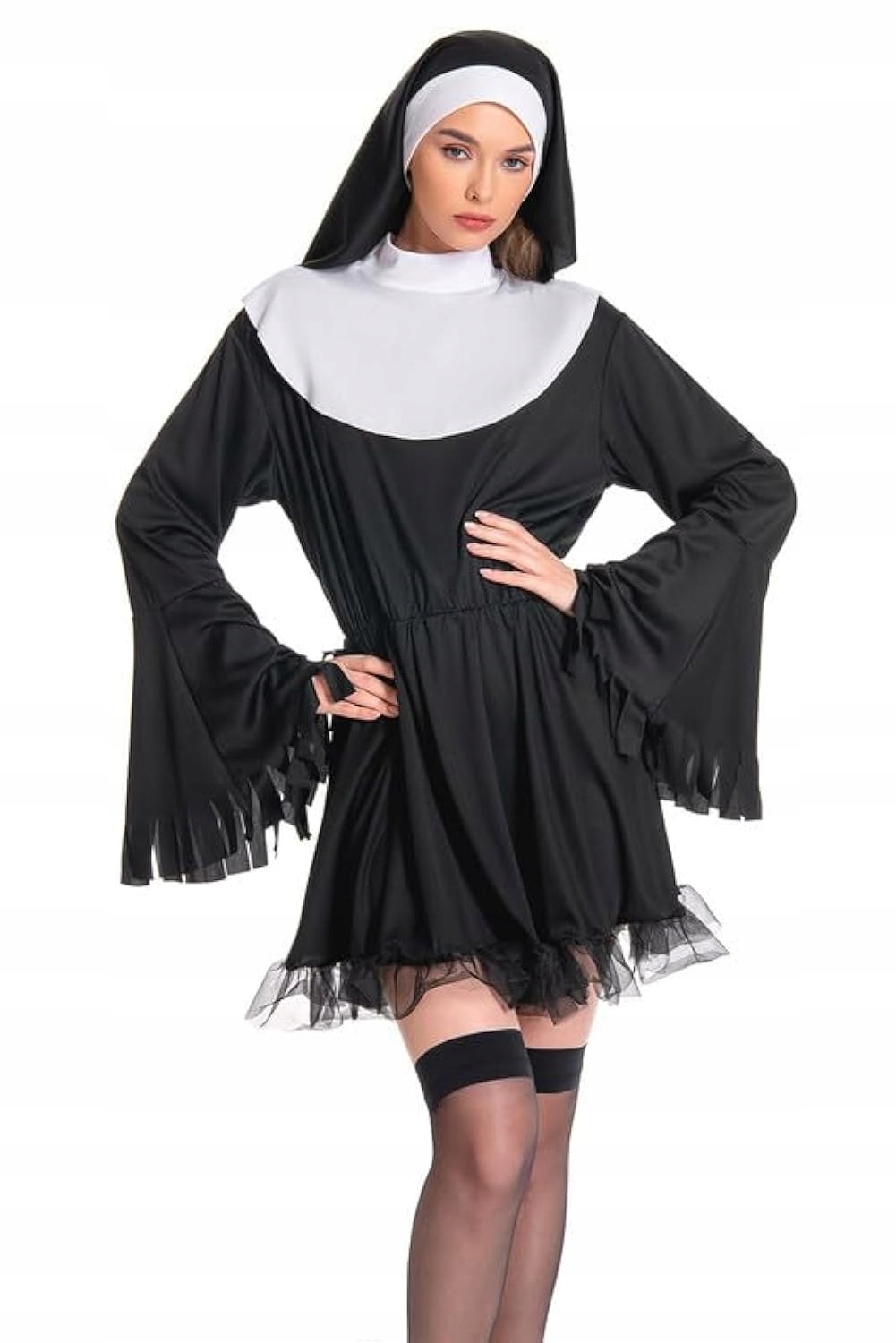 outfit dressing up a flirtatious nun for adults Cosplay's religious sister costume H2> ✝✝ Nun costume - a dress with a white collar + veil + cross h2> In the set: h2>