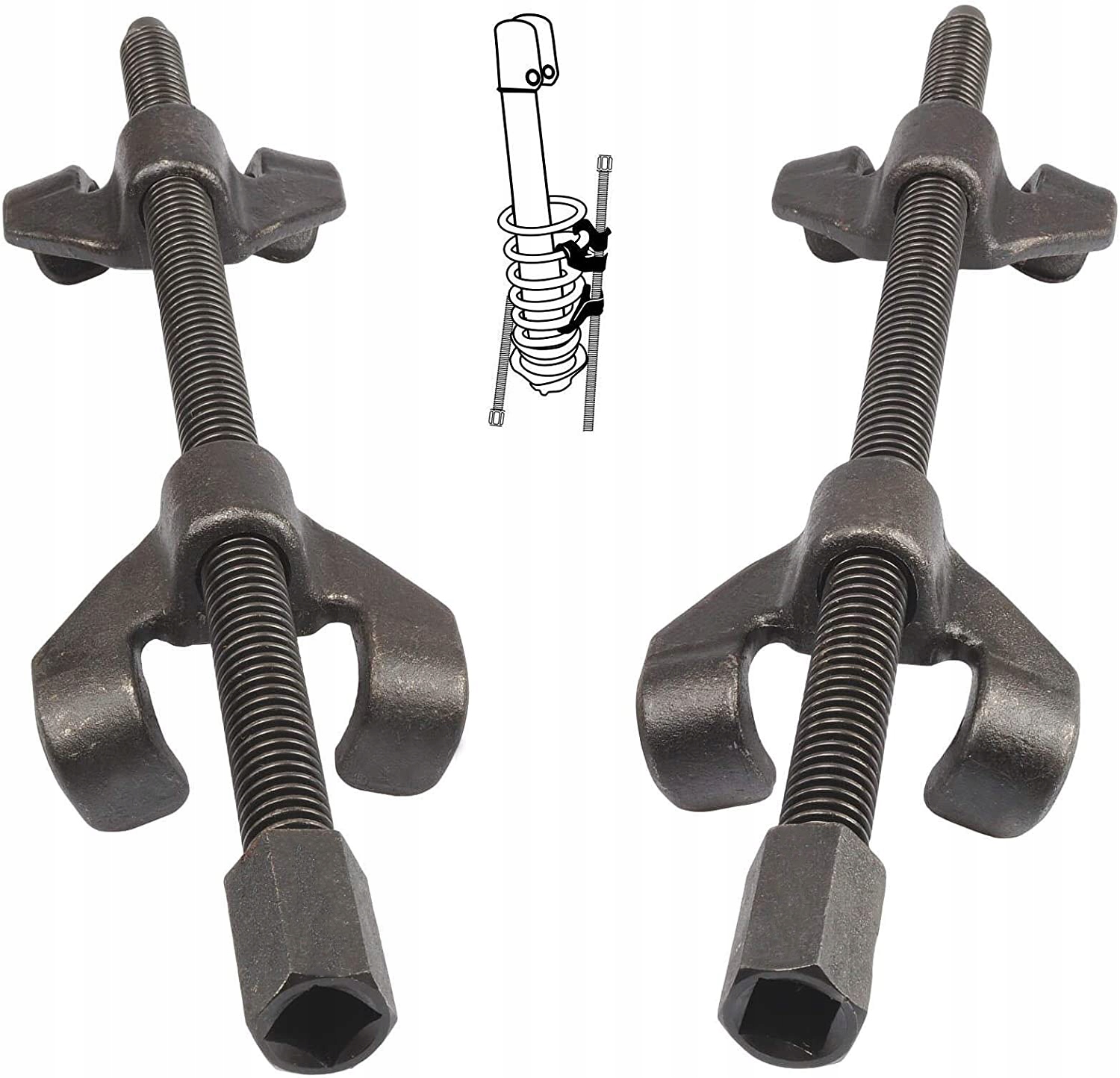 Набір кованих знімачів 410 мм для пружин підвіски. Адаптований до всіх типів пружин у стійках McPherson і незалежних пружин. Екстрактори працюють з тріскачкою 1/2". Тонка різьба полегшує роботу пружини під навантаженням. Безпеку при роботі гарантують спеціально профільовані двоплечі ручки.