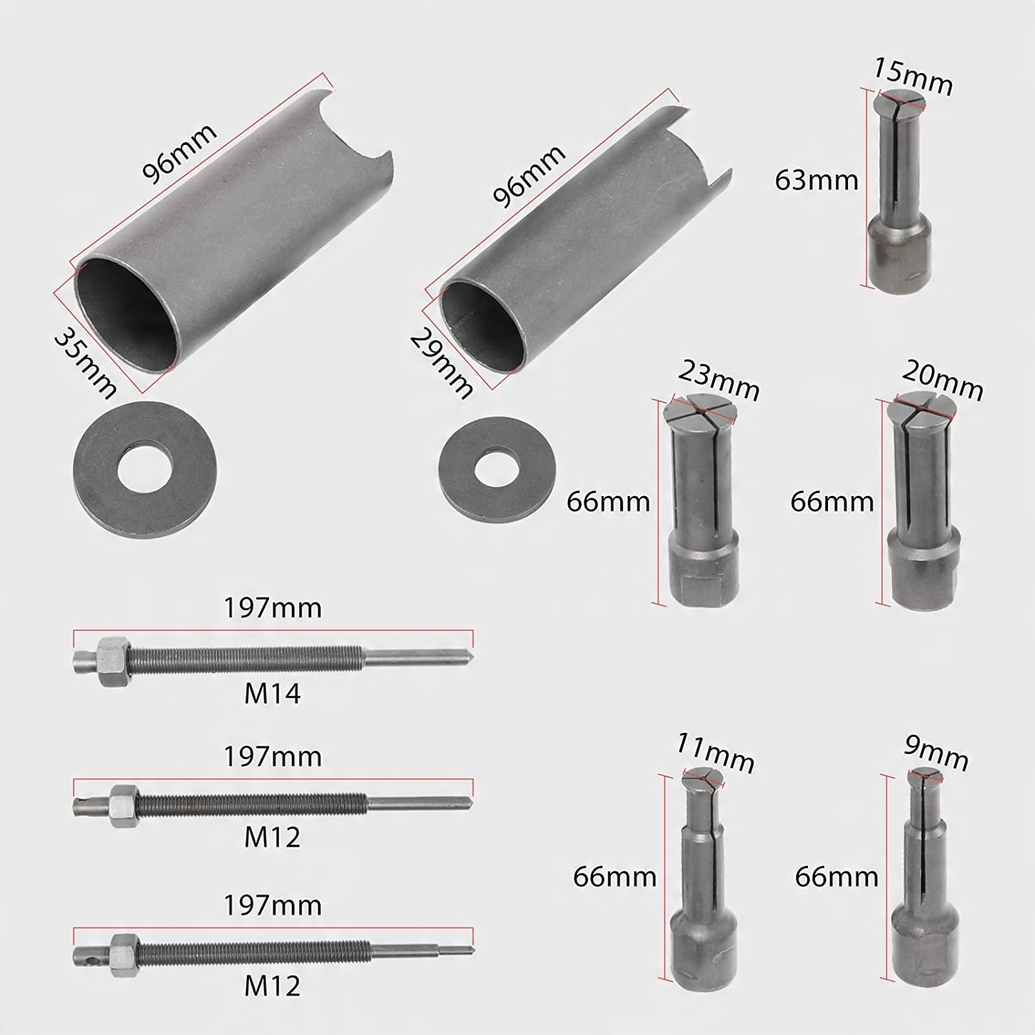 Набір знімачів внутрішніх підшипників мотоцикла постачається з 5 різні розміри відкритих кліпс: 9 мм, 11 мм, 15 мм, 20 мм, 23 мм. Відповідає більшості ваших вимог.