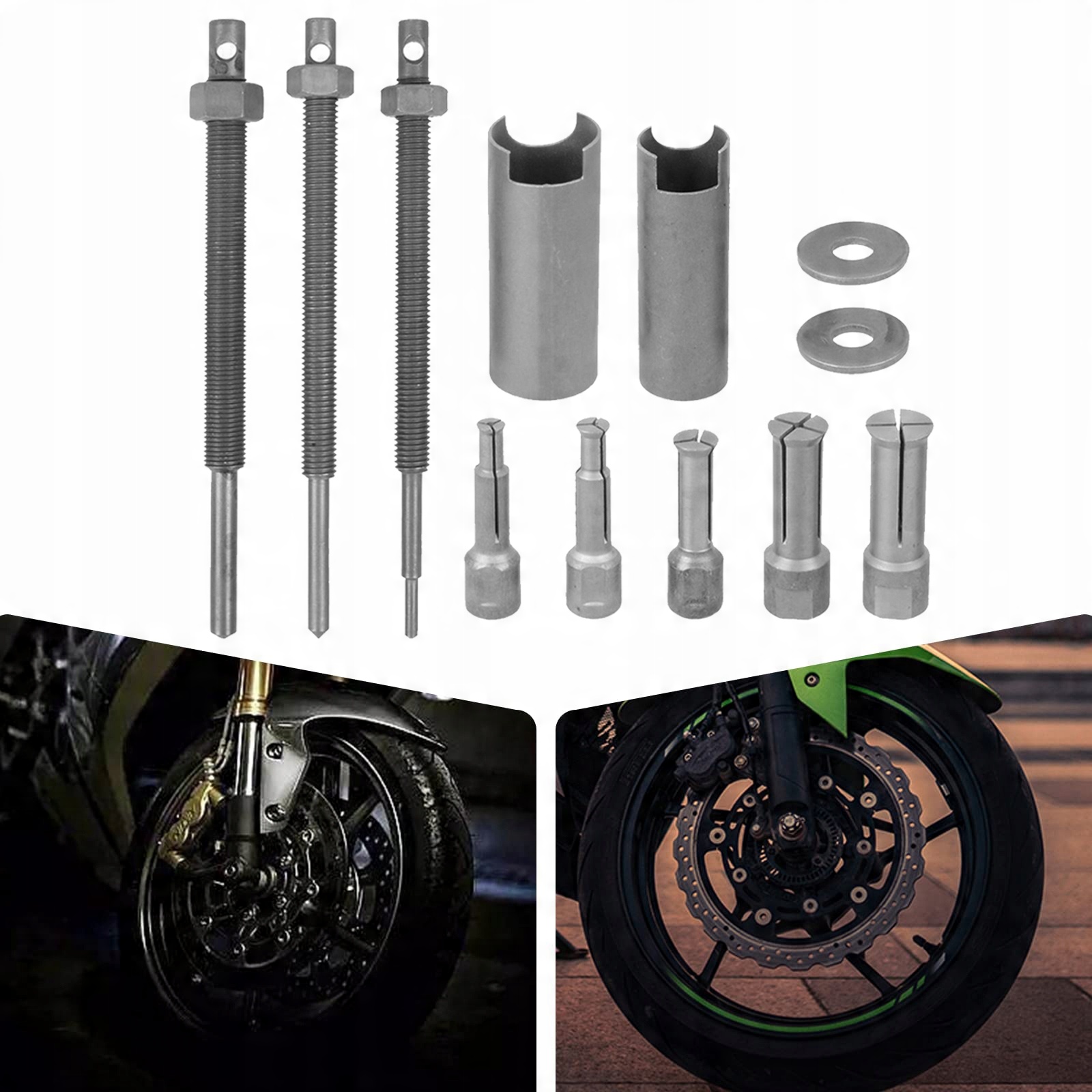 Сумісність із колесом мотоцикла, велосипеда, маховика автомобіля , підшипник насоса, підшипник генератора, підшипник машини тощо. Це хороший інструмент для зняття підшипників мотоциклів, який підходить для приватних осіб, магазинів 4S та ремонтних майстерень.