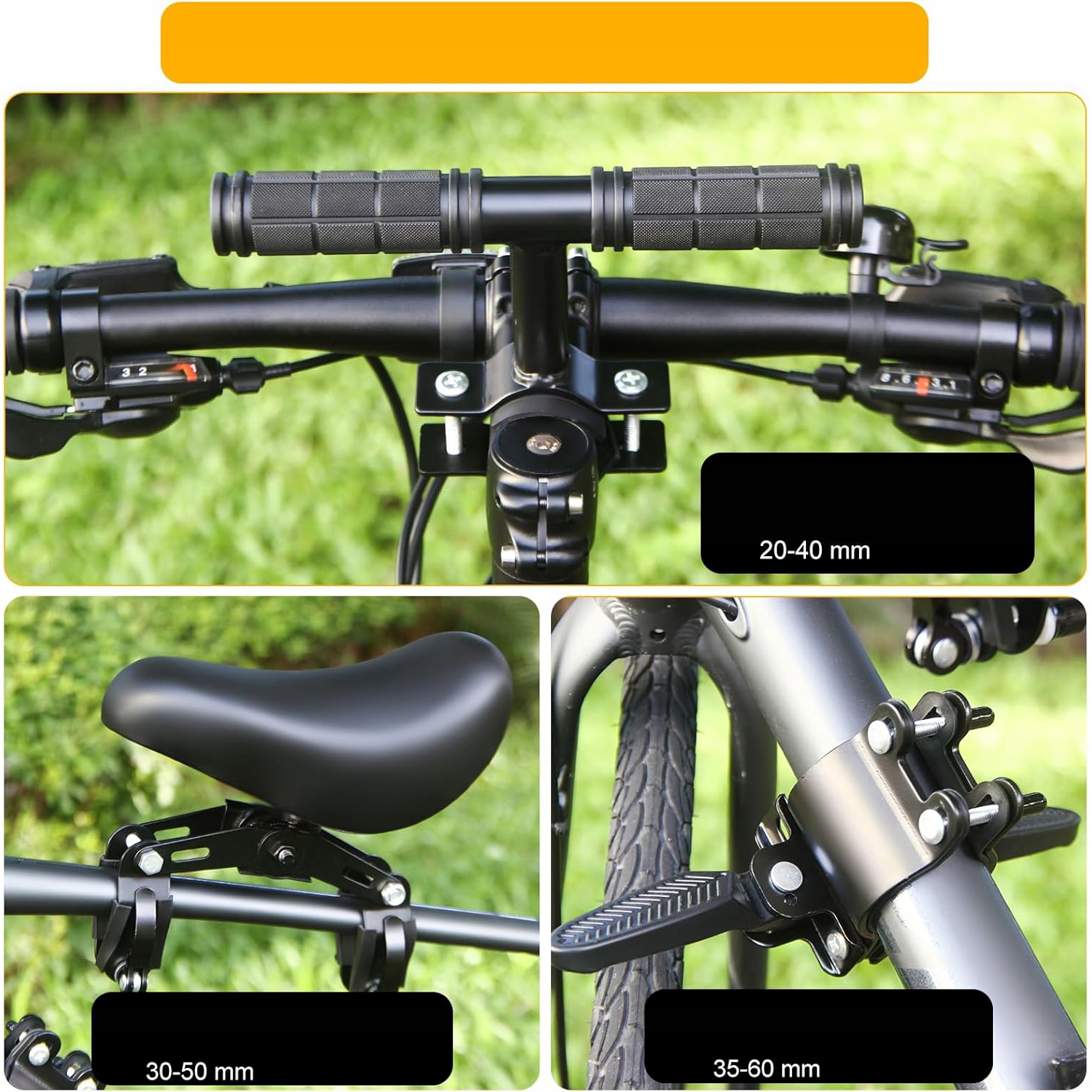 ☁ [все в одному наборі]: Сидіння для велосипедів для дітей на передній частині обладнано регульованою подушкою та гумовими ручками та некосовним складанням підніжки. Щоб переконатися, що ваші діти безпечні та комфортні. Ідеально підходить для інтерактивних подорожей та спортивних розваг з дитиною. дитячі сидіння та педалі ергономічно розроблені для забезпечення дитини комфортом та безпекою водіння. Навіть якщо він керує годиною або довше, це зручно. Це полегшує процес складання та розбирання. Під час їзди на вулиці з дитиною ви можете не тільки насолоджуватися чудовим часом батьків та дітей, але й задовольнити цікавість вашої дитини.