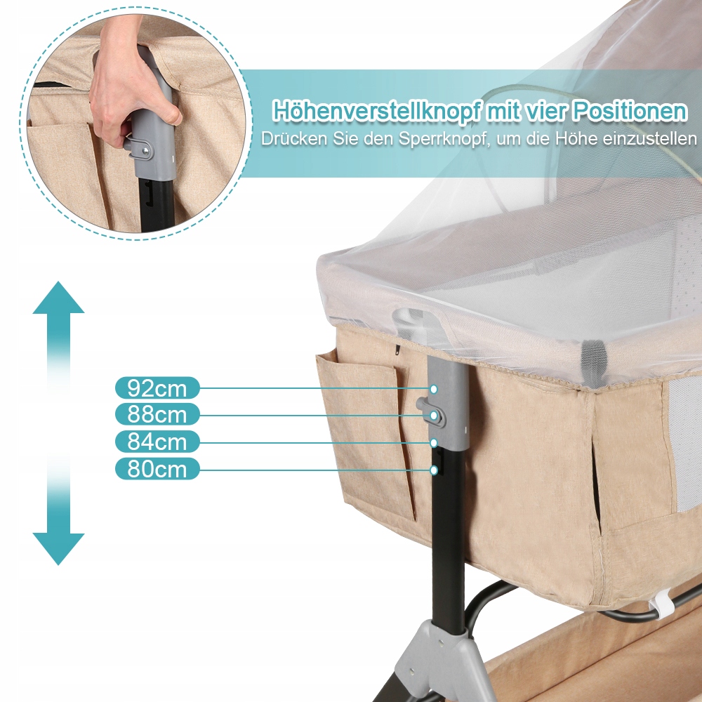 7. 360 градусів поворотні колеса: чотири колеса дозволяють обертати 360 градусів, що полегшує і приємніше переміщення ліжка. Кожне колесо оснащене замком, який запобігає випадковій зміні та забезпечує безпеку дітей.