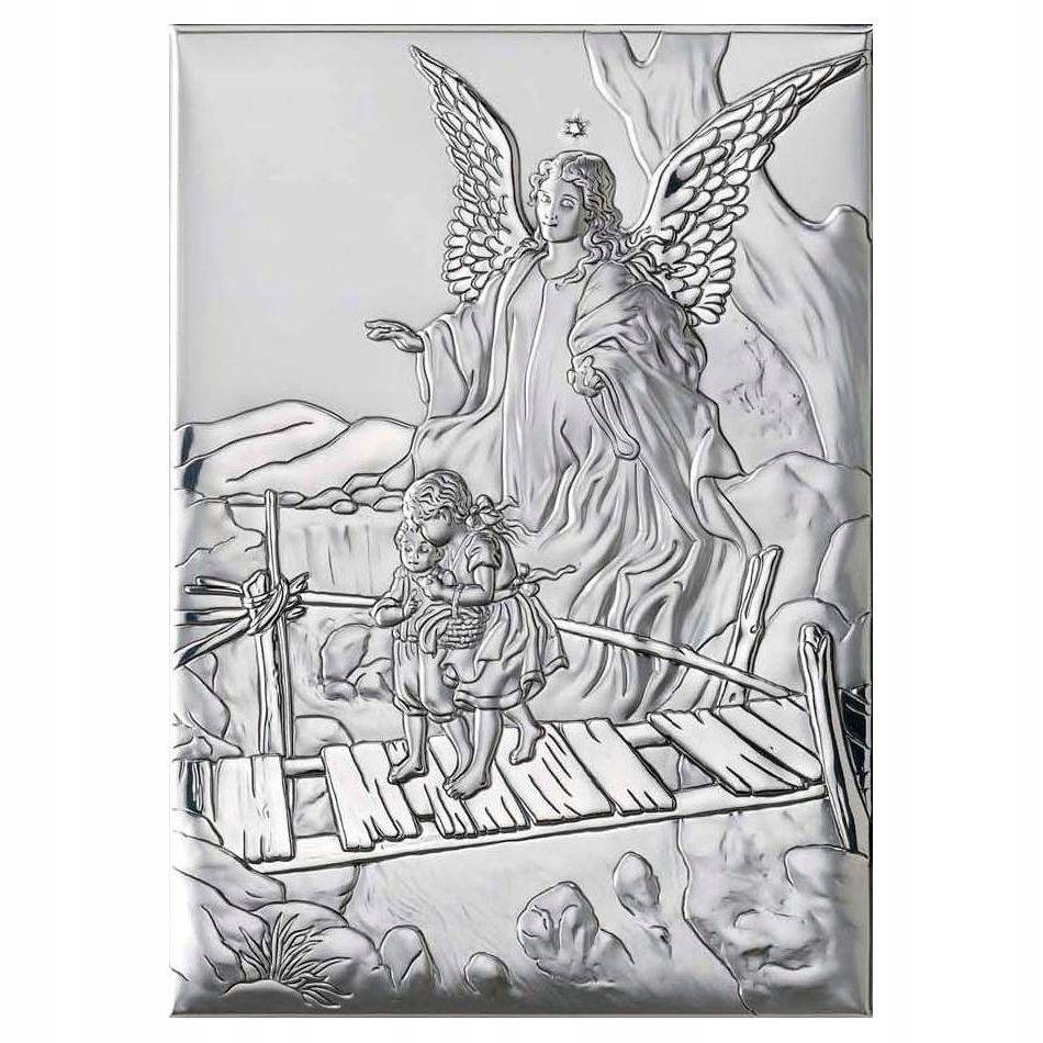 Срібна картина ангел-охоронець у формі прямокутника виготовлена з інноваційного металу MIRO-SILVER.