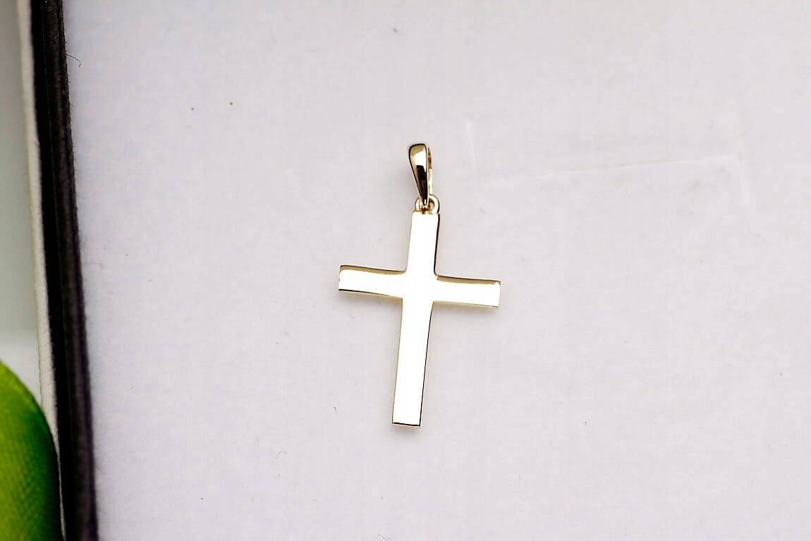 Перехрестя в простому, мінімалістичному вигляді, повністю зробленій з найвищою точністю жовтої золотистої спроби 585.